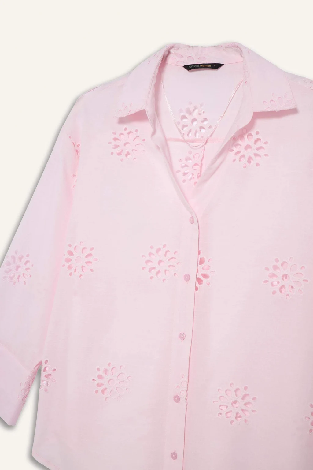 Defacto B5419AXWT18 Beyaz Oversıze Gömlek Yaka Brode Uzun Kollu Gömlek