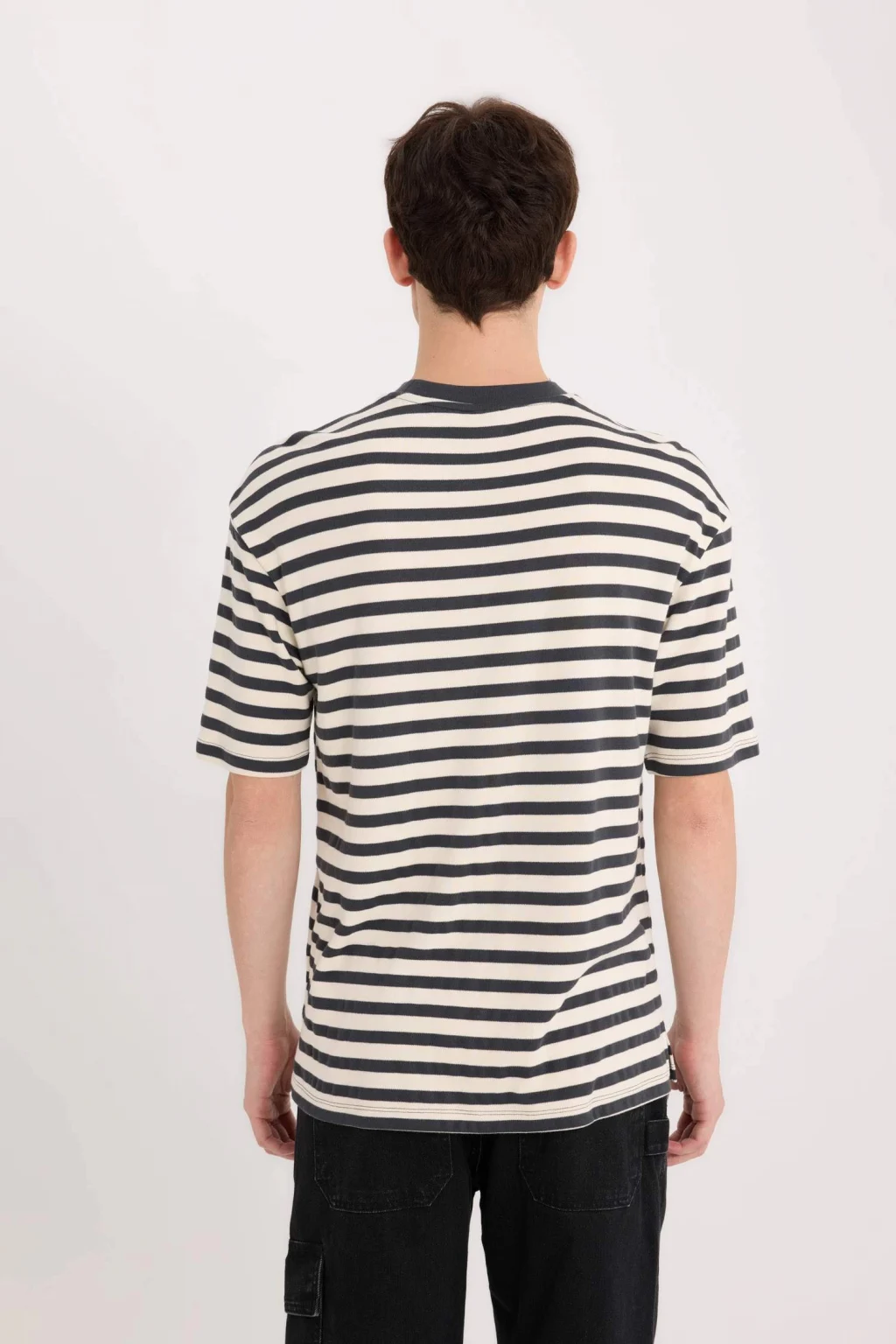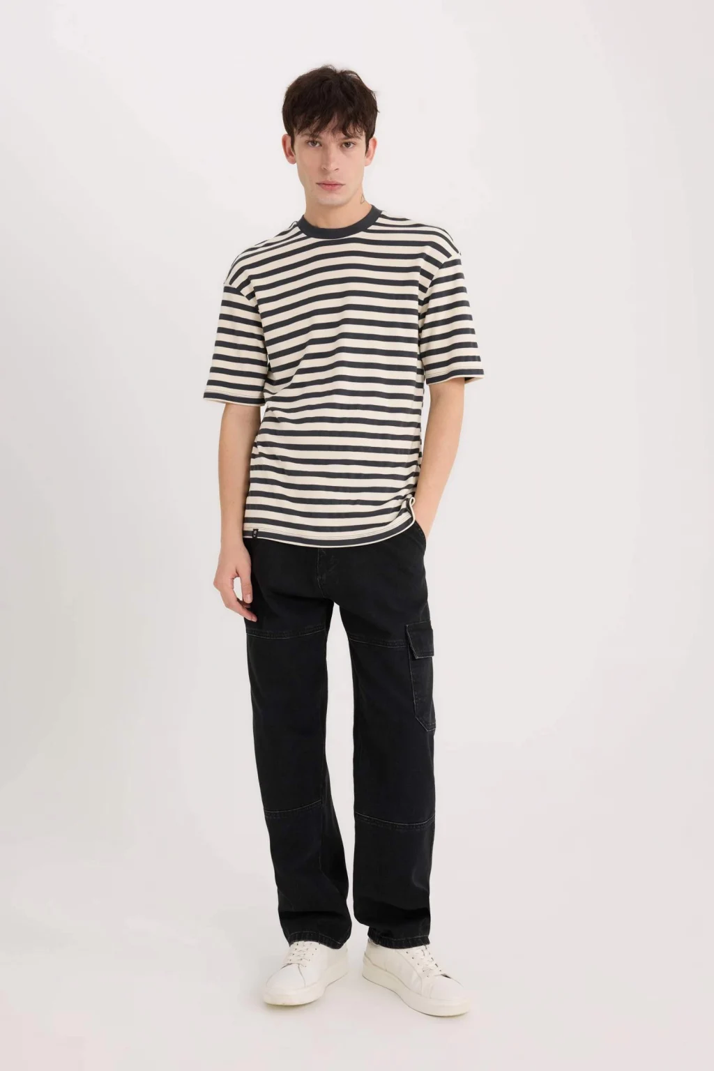 Boxy Fit Bisiklet Yaka Çizgili Kısa Kollu Tişört, modern kesimi ve şık çizgili deseniyle enerjik bir görünüm sunar. Rahat boxy fit yapısı, hareket özgürlüğü sağlar ve sıcak havalarda konforlu bir giyim deneyimi sunar. Hem günlük hem de rahat kombinler için ideal bir tercih.