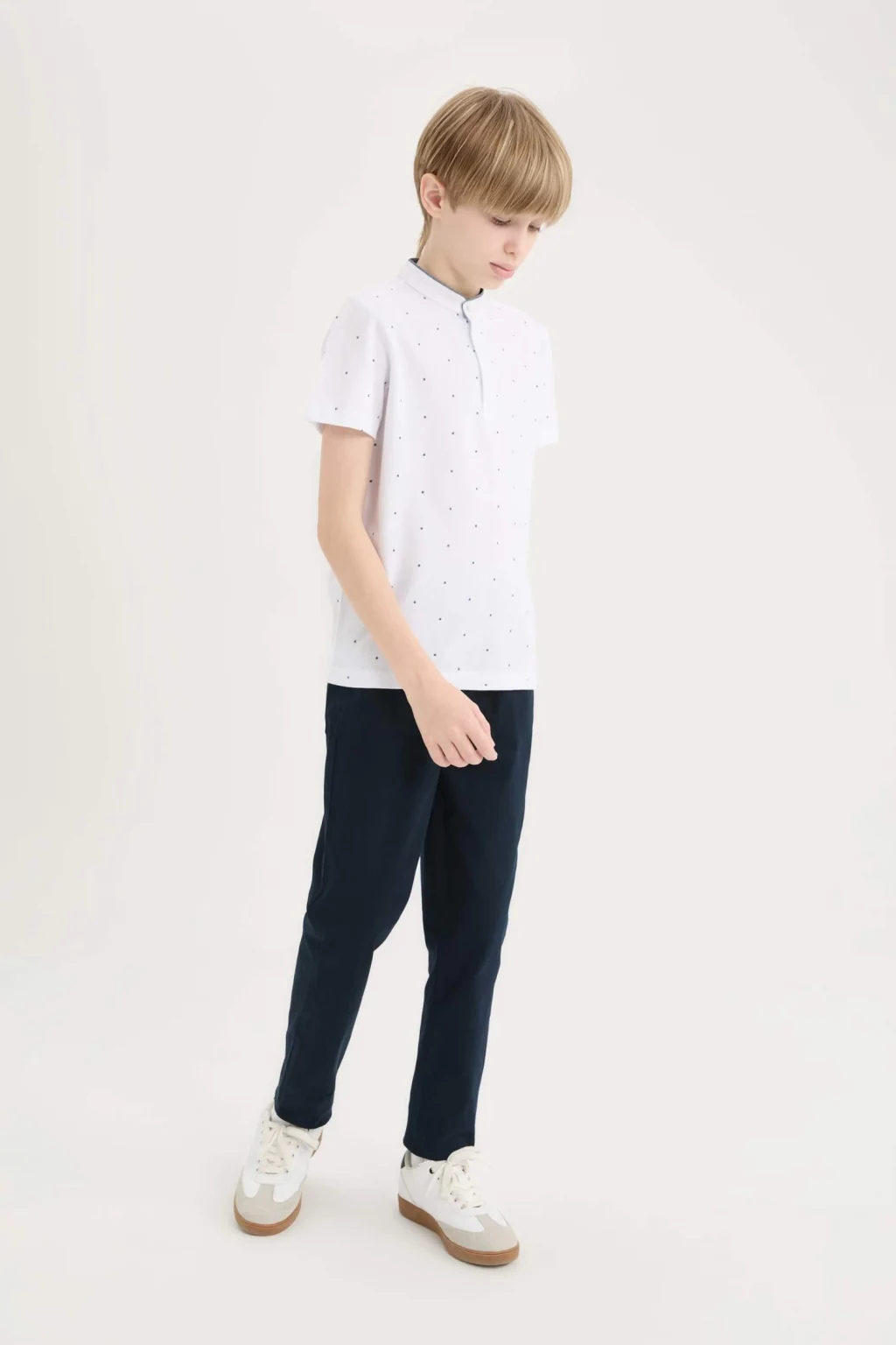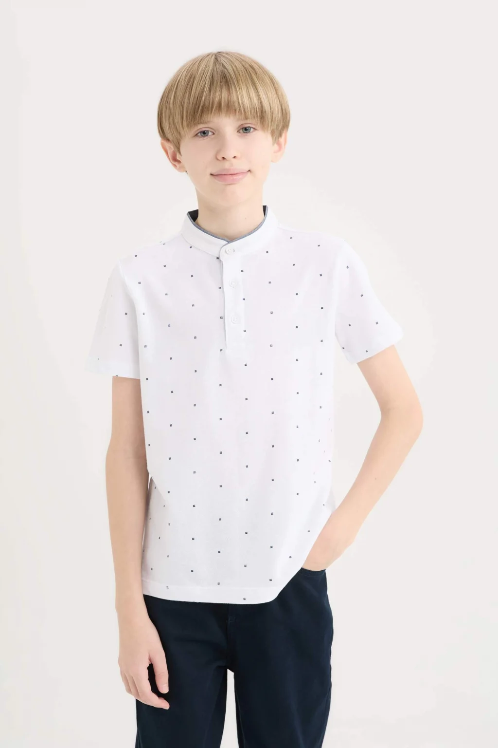 Mikro metrajlı beyaz kısa kollu polo tişört, örgü kumaştan üretilmiştir. Çocuklara özel olarak tasarlanmış olan bu ürün, minimal desen temalı ve regular fit kalıba sahiptir. İlkbahar/Yaz mevsimlerinde kullanıma uygundur ve erkek çocuklar için ideal bir seçenektir. Hakim yaka detayıyla şıklığı ön plana çıkarır.