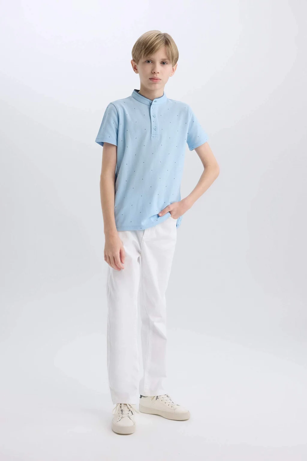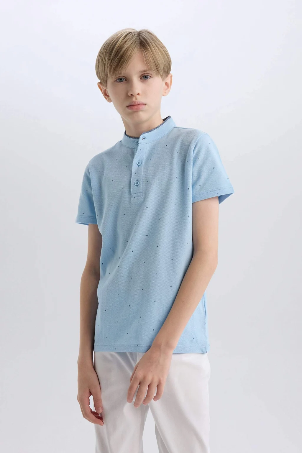Mikro metrajlı kısa kol polo tişört, örme kumaştan yapılmıştır. Regular fit kalıbıyla öne çıkar ve mavi renkte tasarlanmıştır. Minimal desen teması ve baskılı detaylarıyla ilkbahar/yaz sezonu için idealdir. Hakim yaka detayıyla şıklığı ve rahatlığı bir arada sunar. Erkek çocuklar için uygun bir seçenektir.