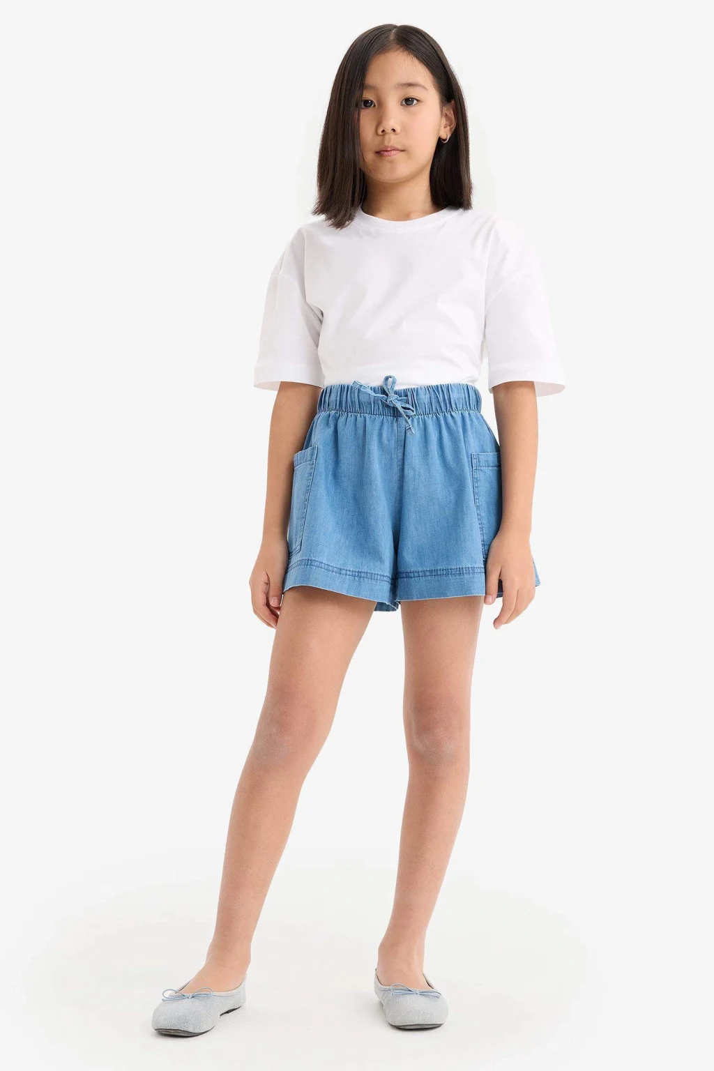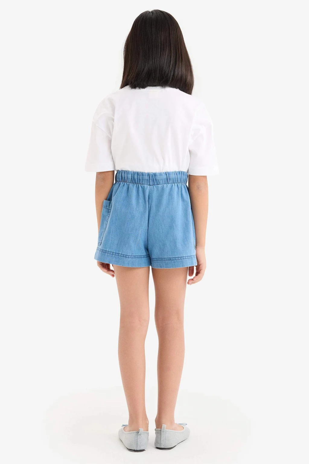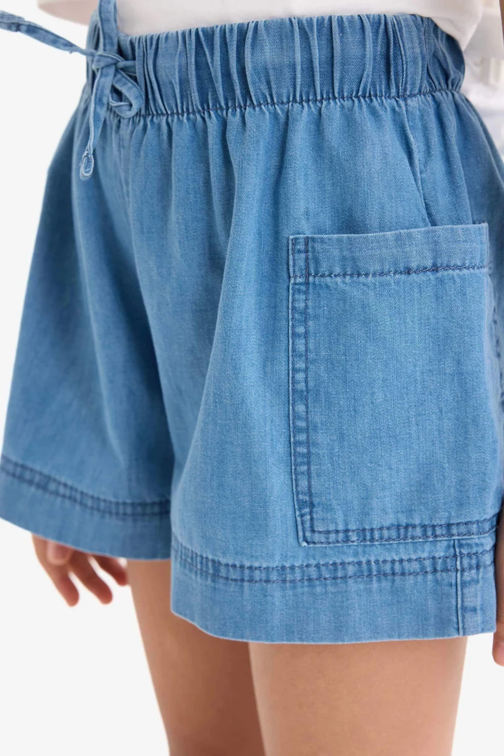 Defacto B6574 Mavi Kız Çocuk Beli Lastikli Cepli Jean Şort