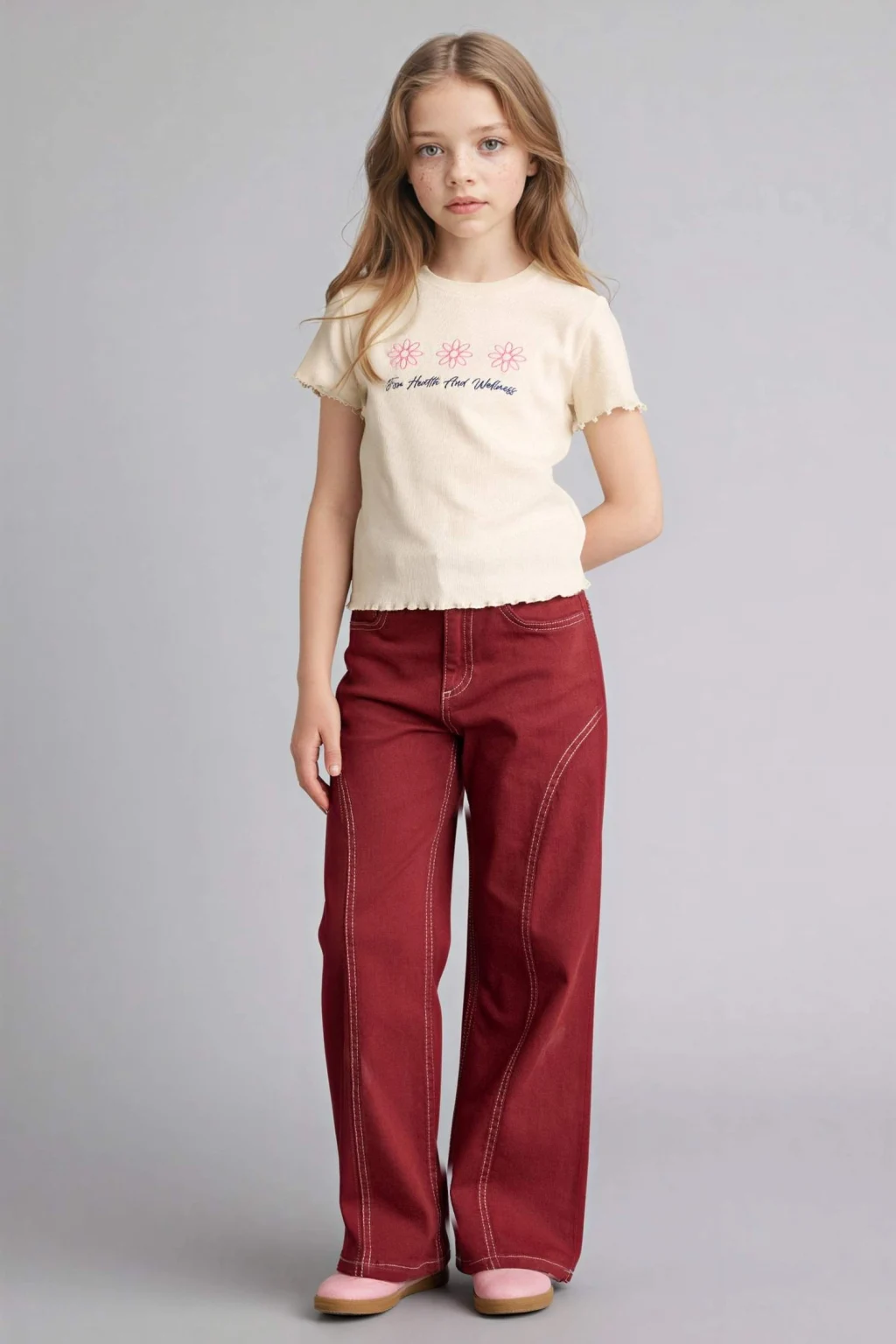 Slim fit kesimi ve fitilli kaşkorse dokusuyla kız çocuklar için hem şık hem de rahat bir seçenek sunan tişört, gün boyu konfor sağlar. Desenli tasarımıyla enerjik ve modern bir görünüm kazandırır. Jean, etek veya şortlarla kolayca kombinlenebilir.