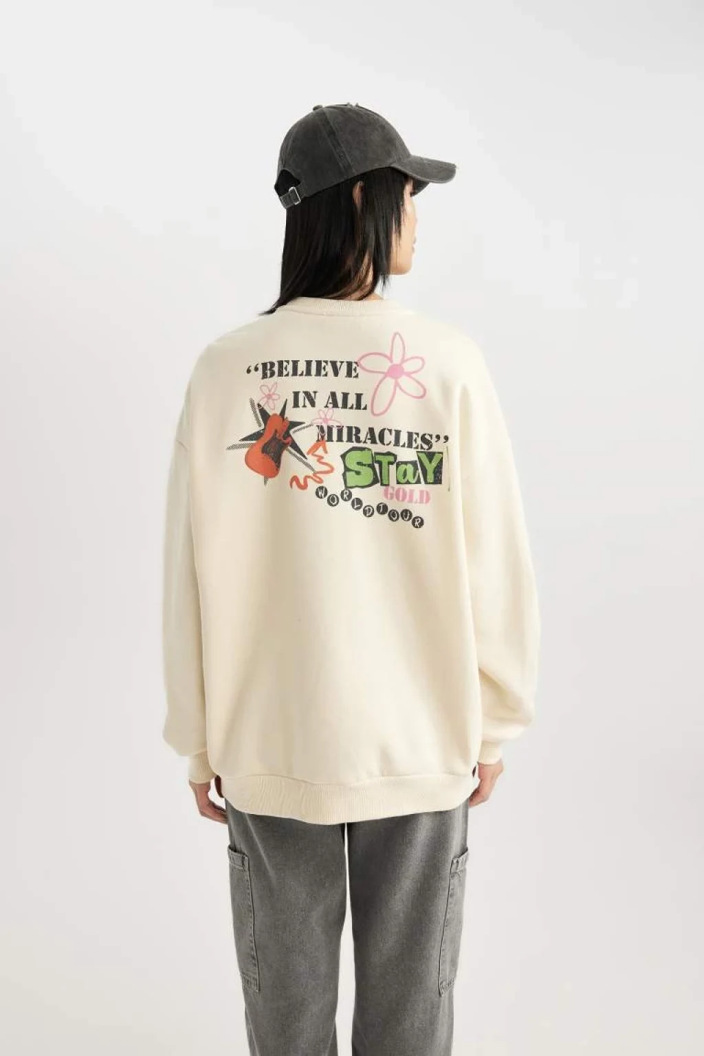 Bu Coool Oversize Fit Baskılı Bisiklet Yaka Kalın Sweatshirt, rahatlık ve tarzı bir araya getiriyor. Oversize kesimi ve kalın kumaşıyla hem sıcak tutuyor hem de modern bir görünüm sunuyor. Bisiklet yaka detayı ise bu sweatshirt'e ekstra bir şıklık katıyor. Gardırobunuzun vazgeçilmez parçalarından biri olacak olan bu sweatshirt, her mevsimde kullanabileceğiniz çok yönlü bir seçenek.