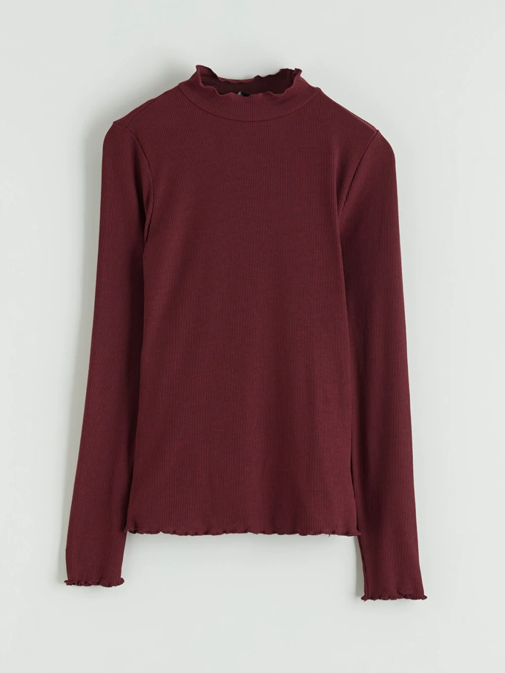 LCW Modest Bordo Fırfırlı Dik Yaka Kadın Body