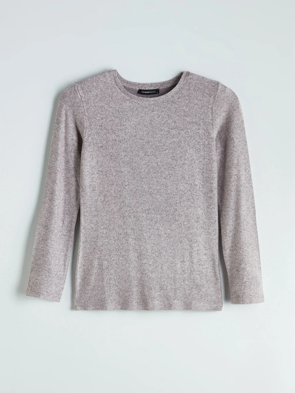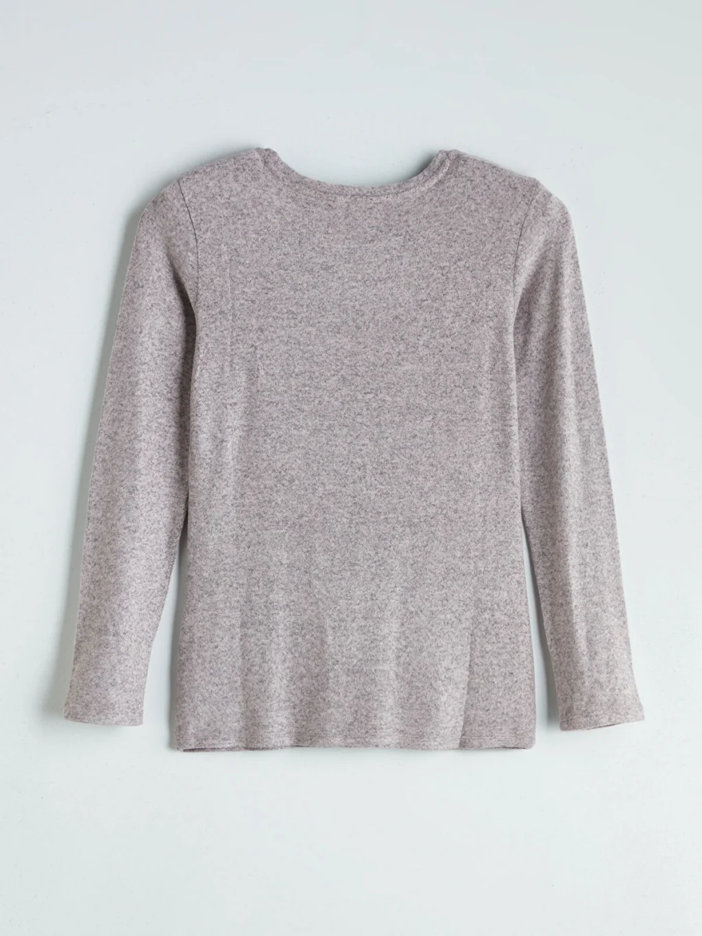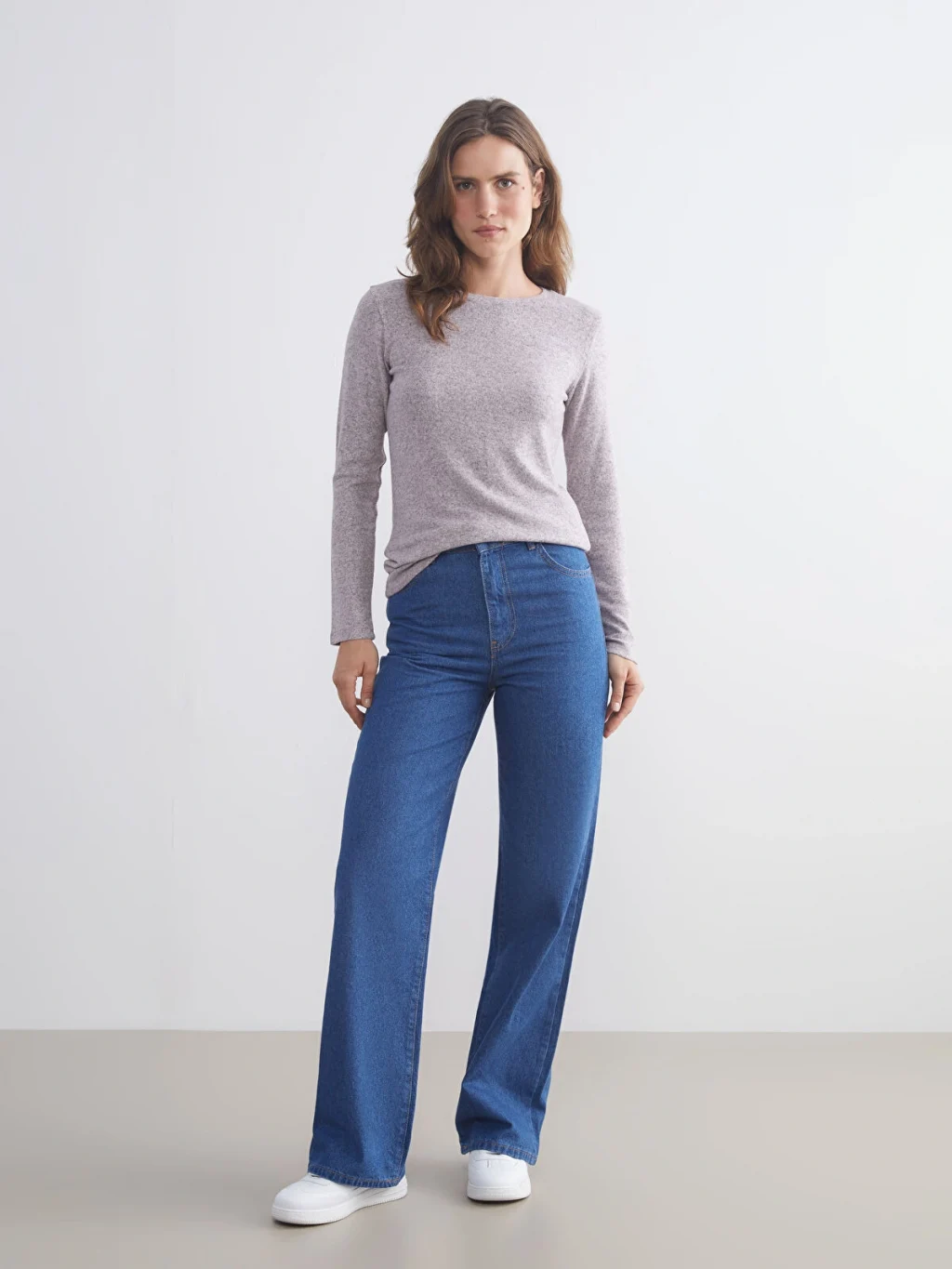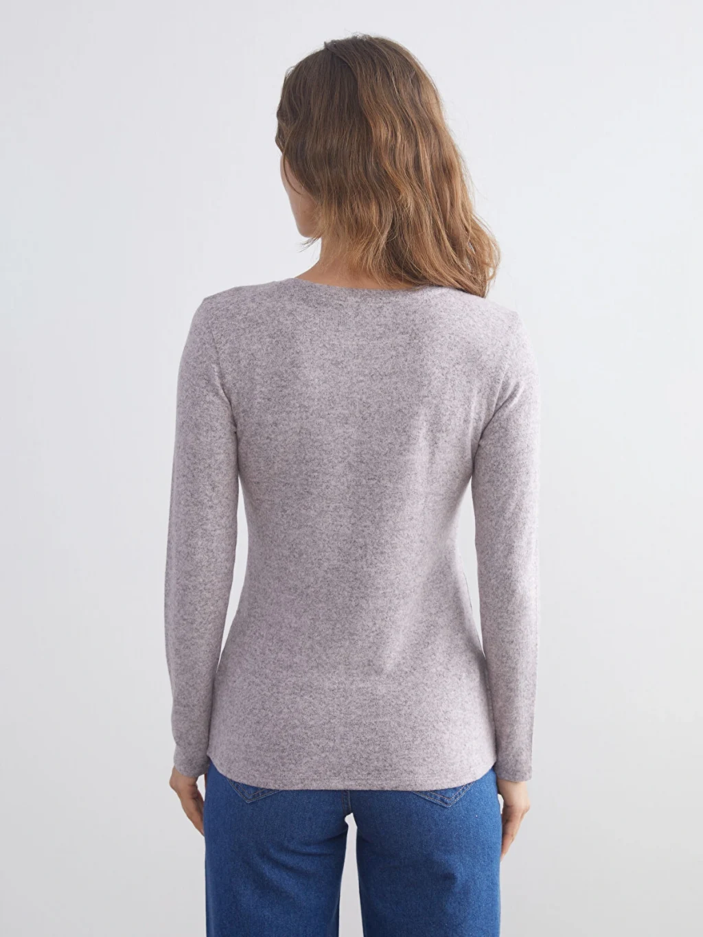 Bisiklet yaka, uzun kollu ve yanları yırtmaçlı kadın body, dar kalıplı penye kumaştan üretilmiştir.