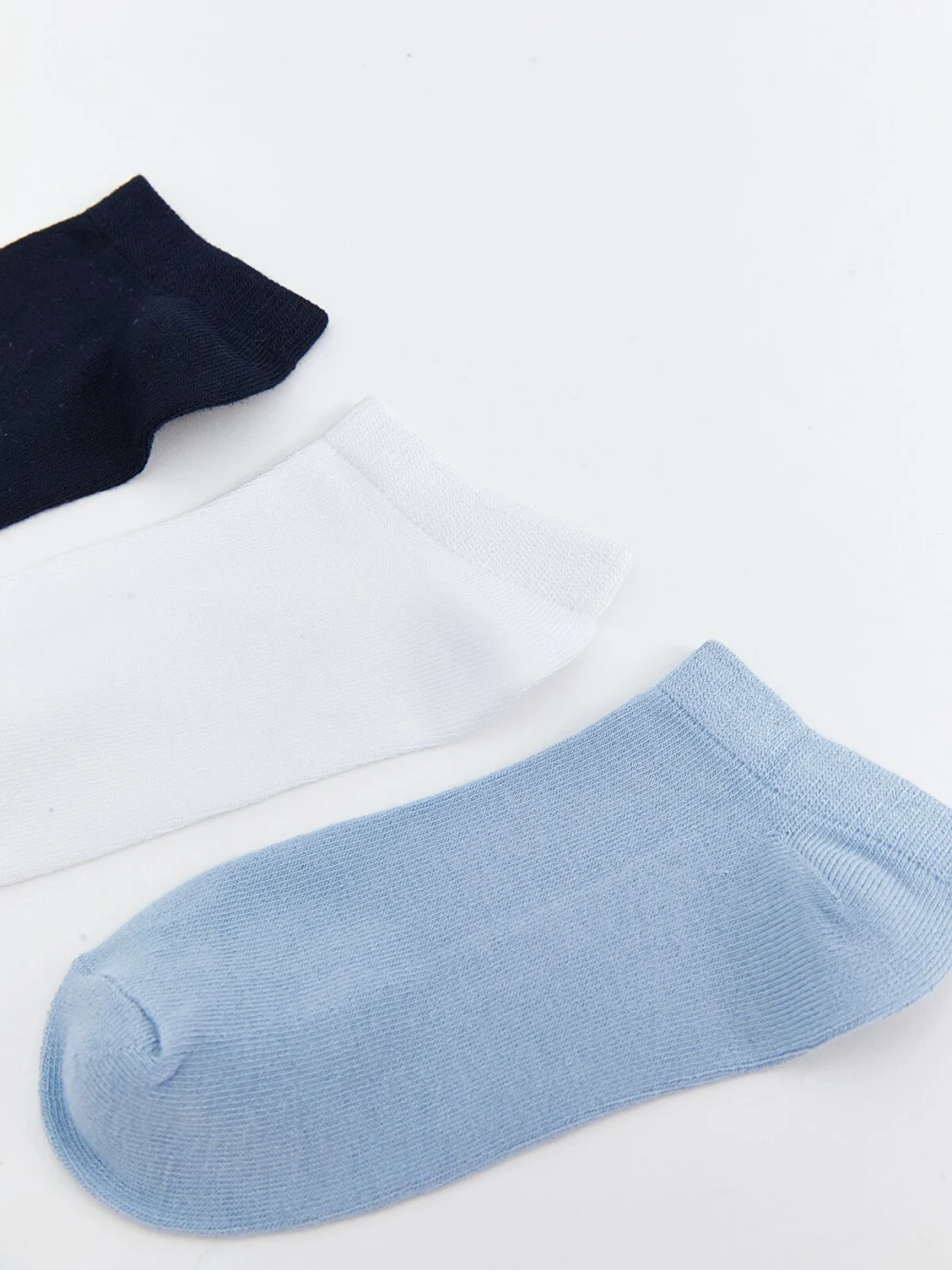 Erkek çocuk patik çorap, beş çift set halinde sunulmaktadır. Her bir çorap düzdür.