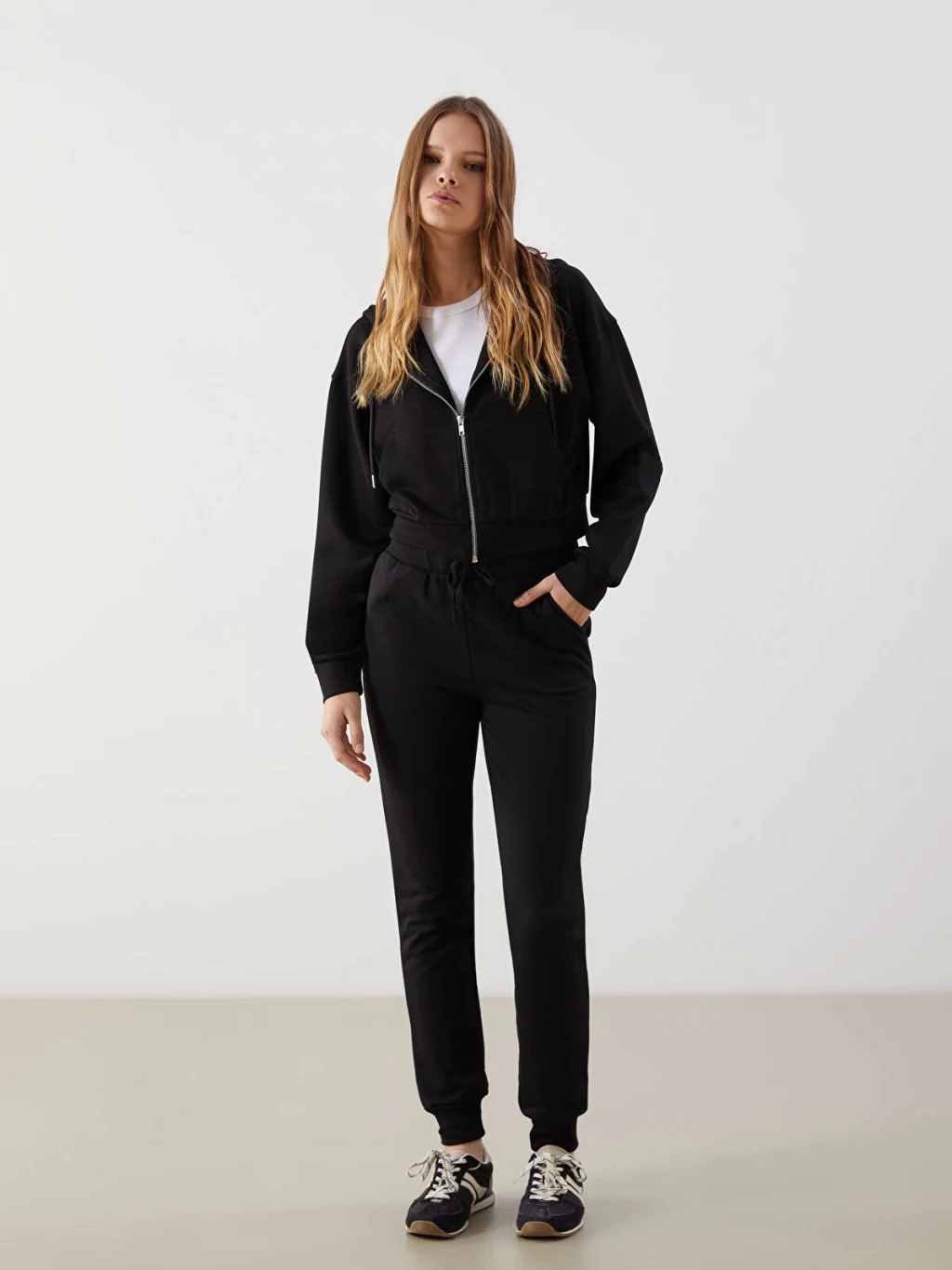 Jogger eşofman altı, pamuk karışımlı üç iplik kumaştan üretilmiştir. Belindeki lastikli ve paçalarındaki ribanalı detayı sayesinde vücuda tam oturur. İki yandan cepli tasarımıyla eşyalarınızı taşımanızı kolaylaştırır ve rahat bir spor deneyimi sunar.