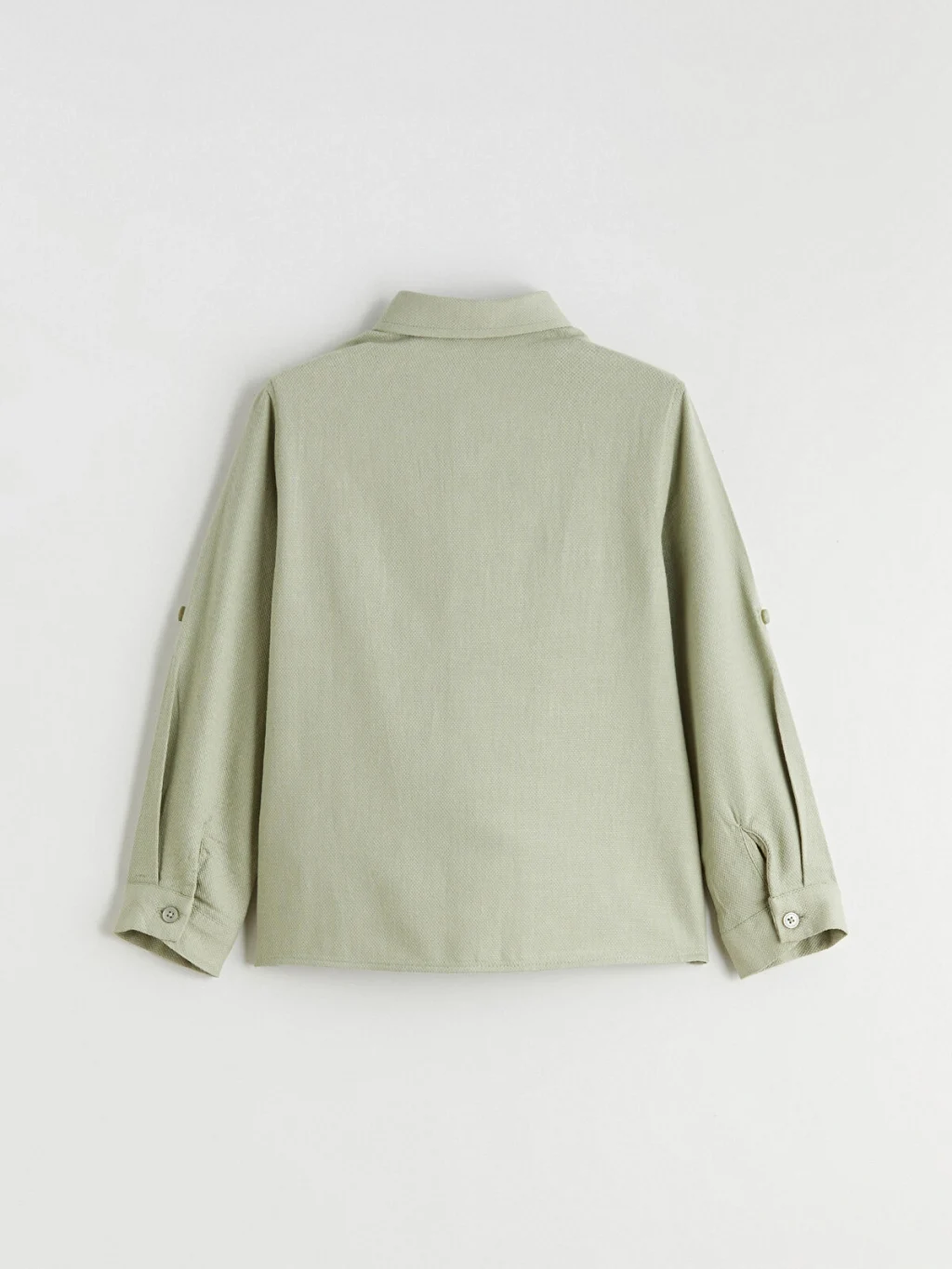 Gömlek yakalı ve uzun kollu erkek çocuk gömlek, %100 pamuklu kumaştan üretilmiştir. Önden düğme kapamalıdır ve kolları katlanabilir özelliktedir.