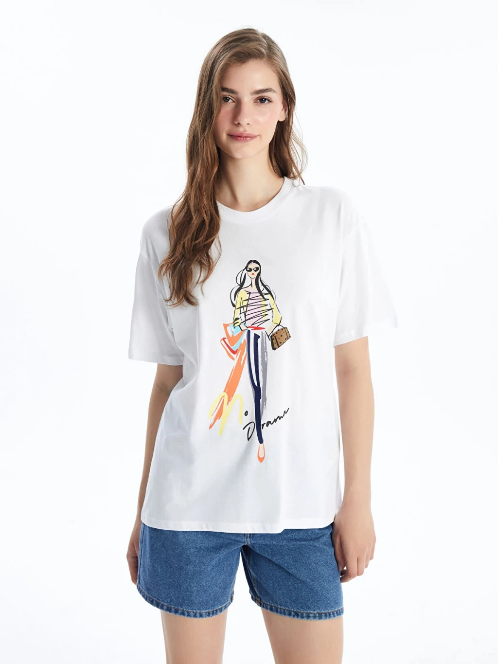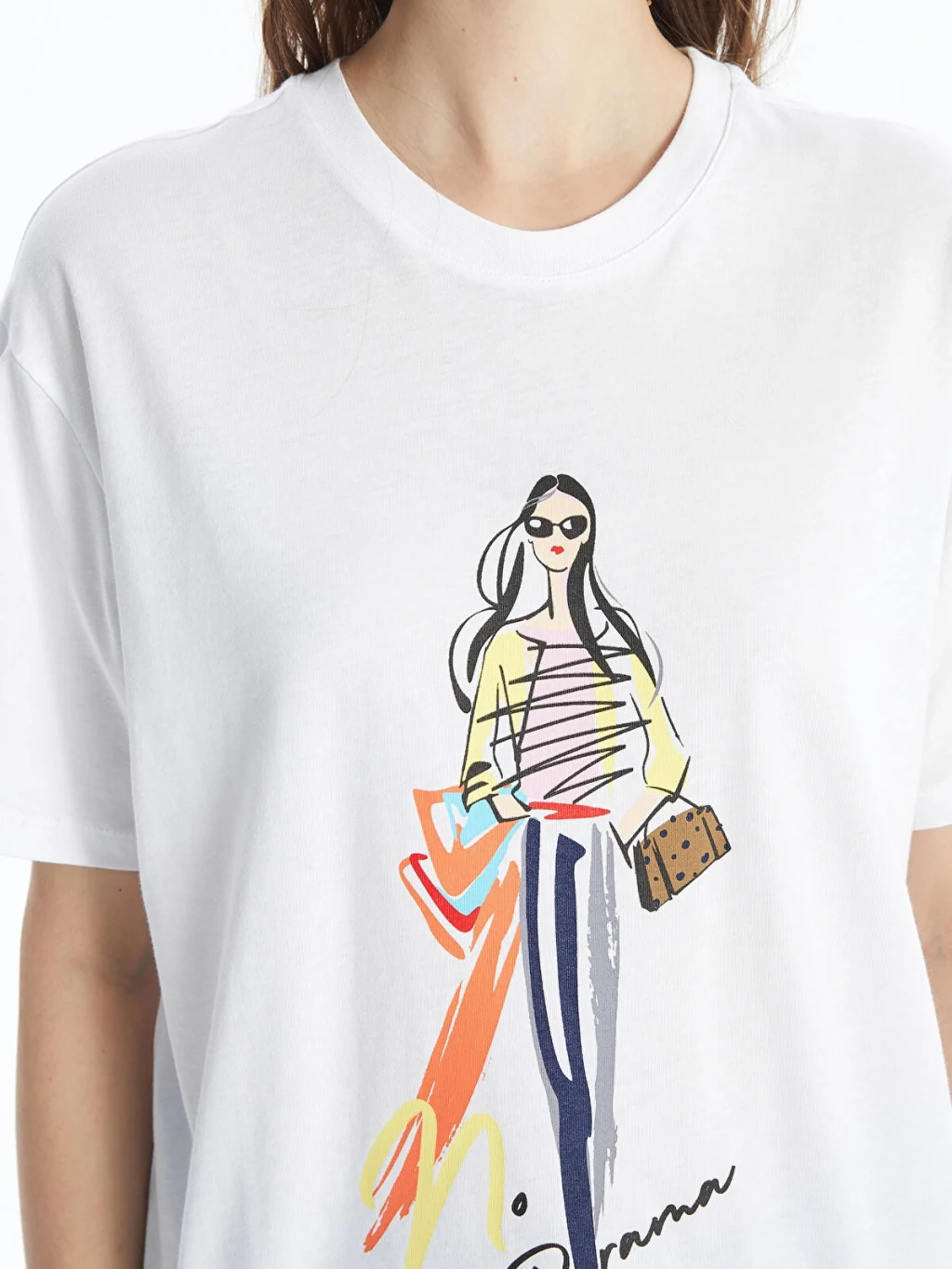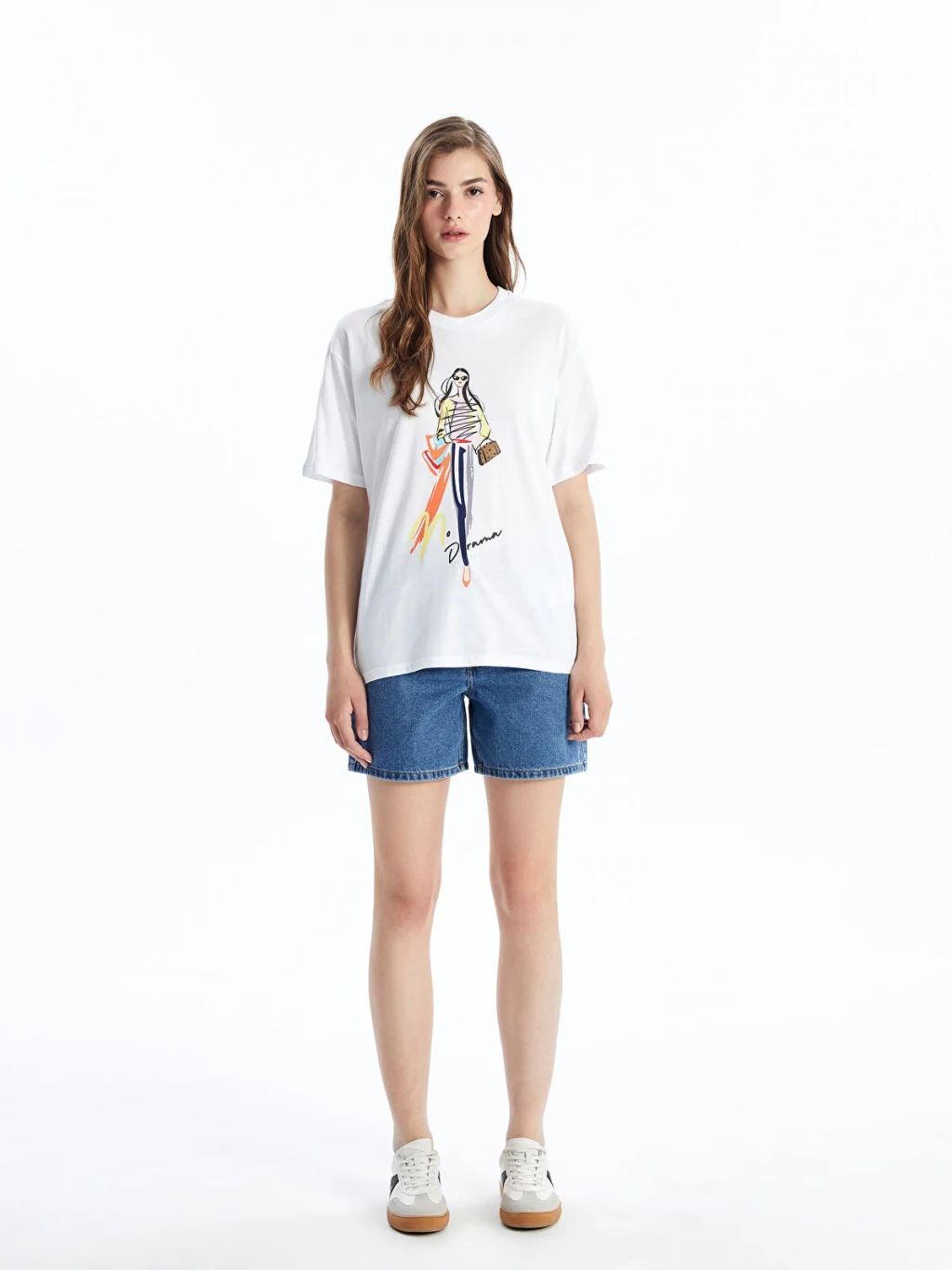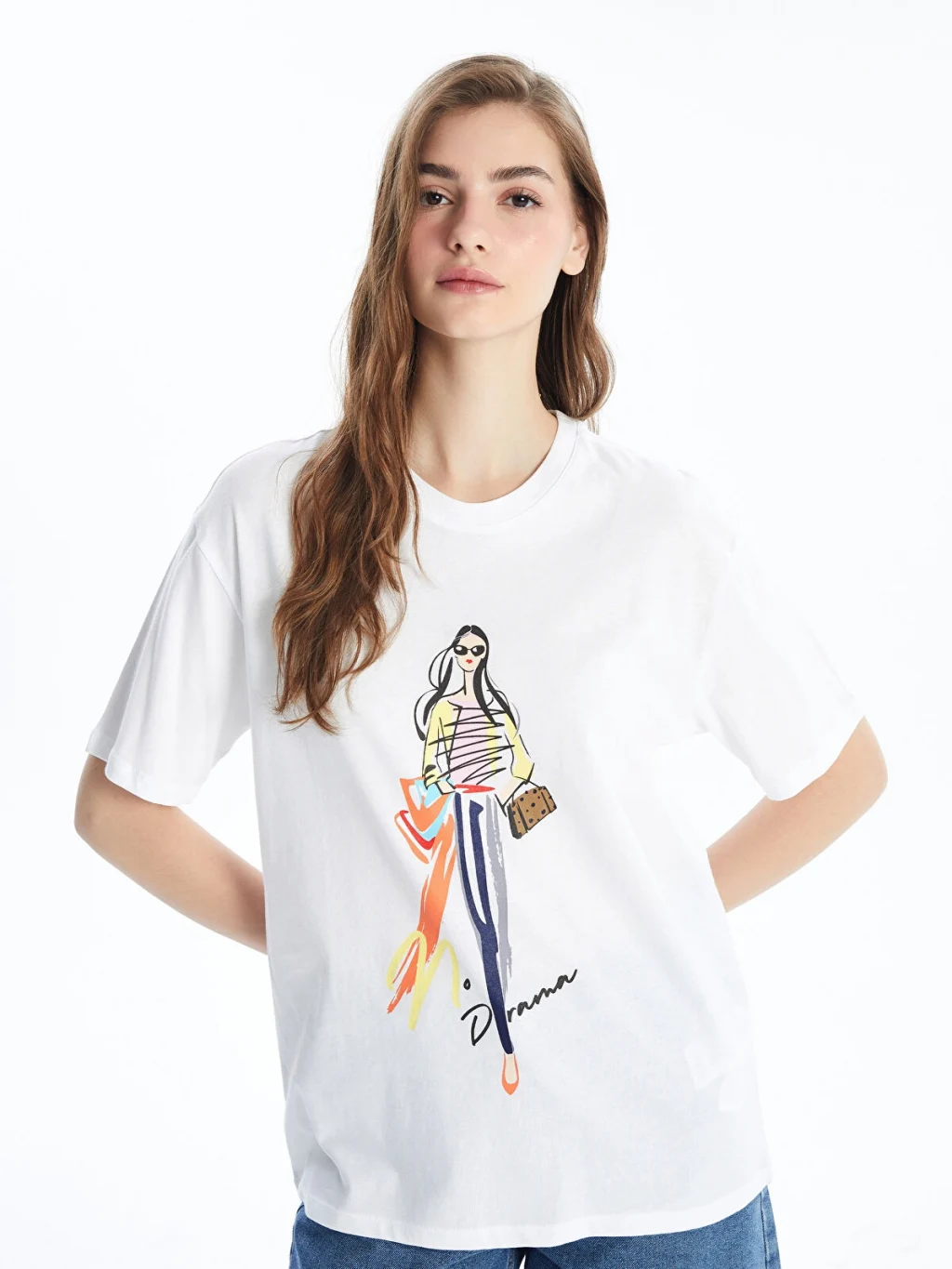 Bisiklet yaka baskılı kısa kollu oversize tişört, pamuklu elyaftan üretilmiştir. Hafif ve nefes alabilen yapısı ile gün boyu konfor sunar. Oversize kesimi sayesinde hareket özgürlüğü sağlar.