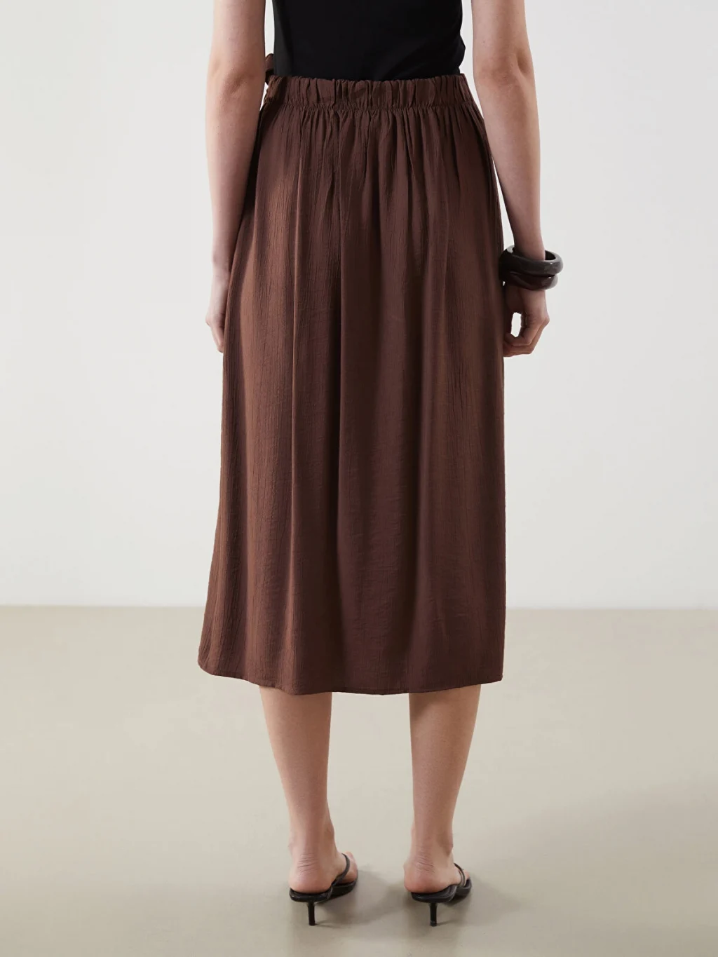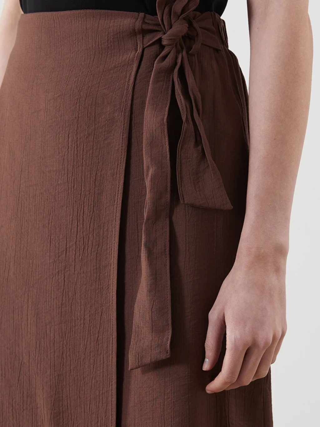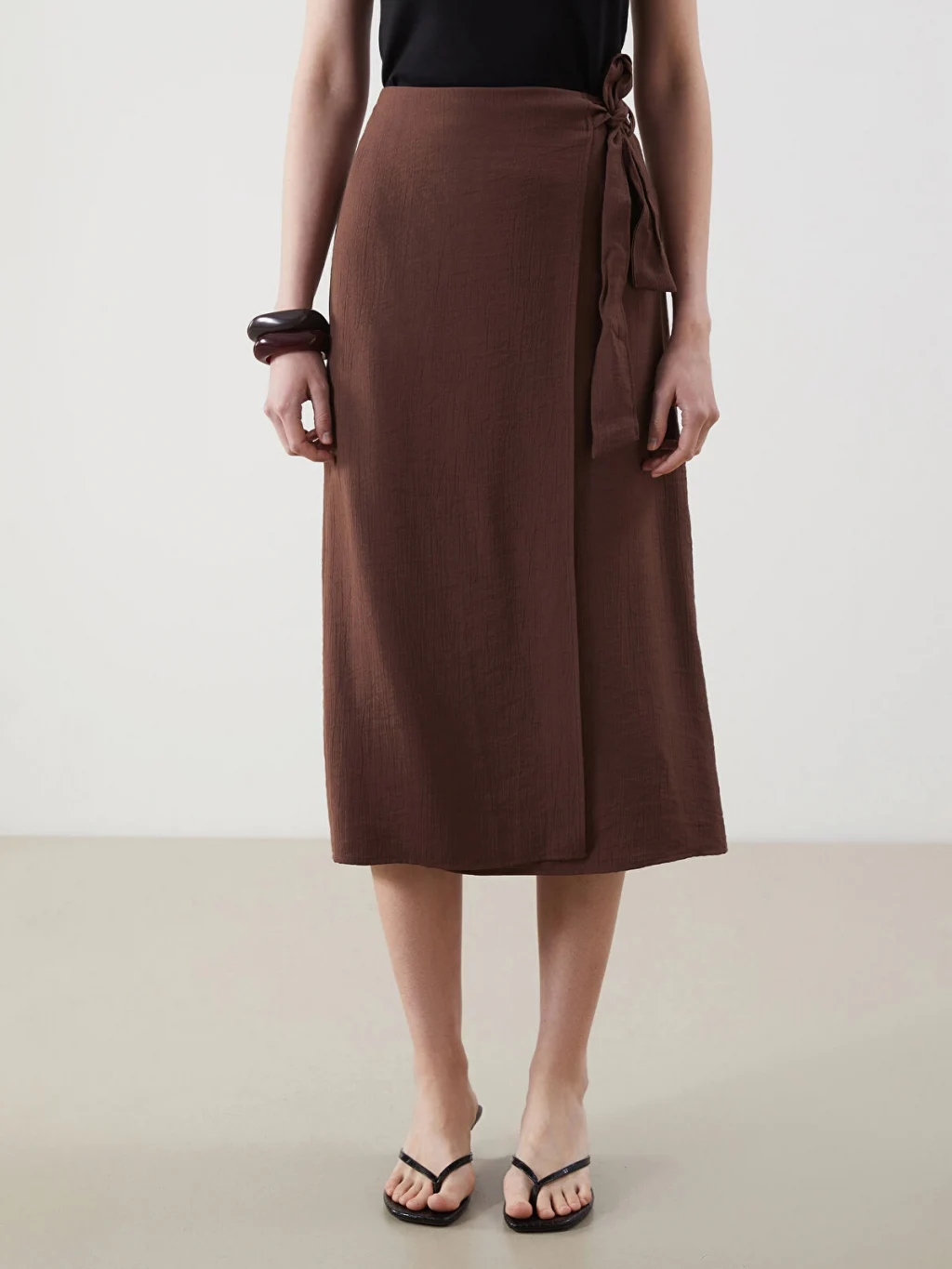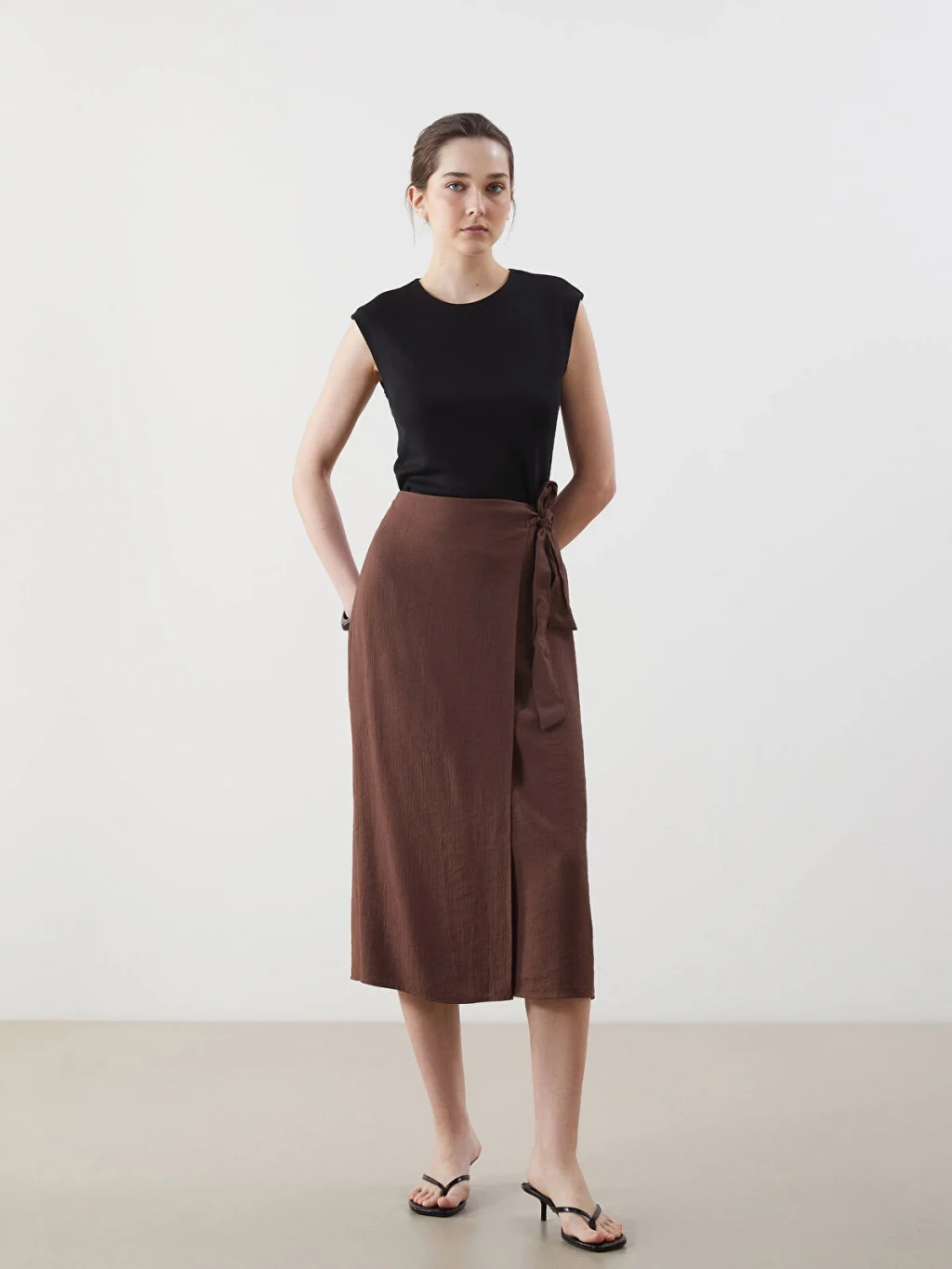Beli Lastikli Kadın Etek, yumuşak dokusuyla rahat bir kullanım sunar. Bel kısmındaki bağlama detayı, etek modeline şıklık katarken, iki parça görünümü ile dinamik bir tarz yaratır.