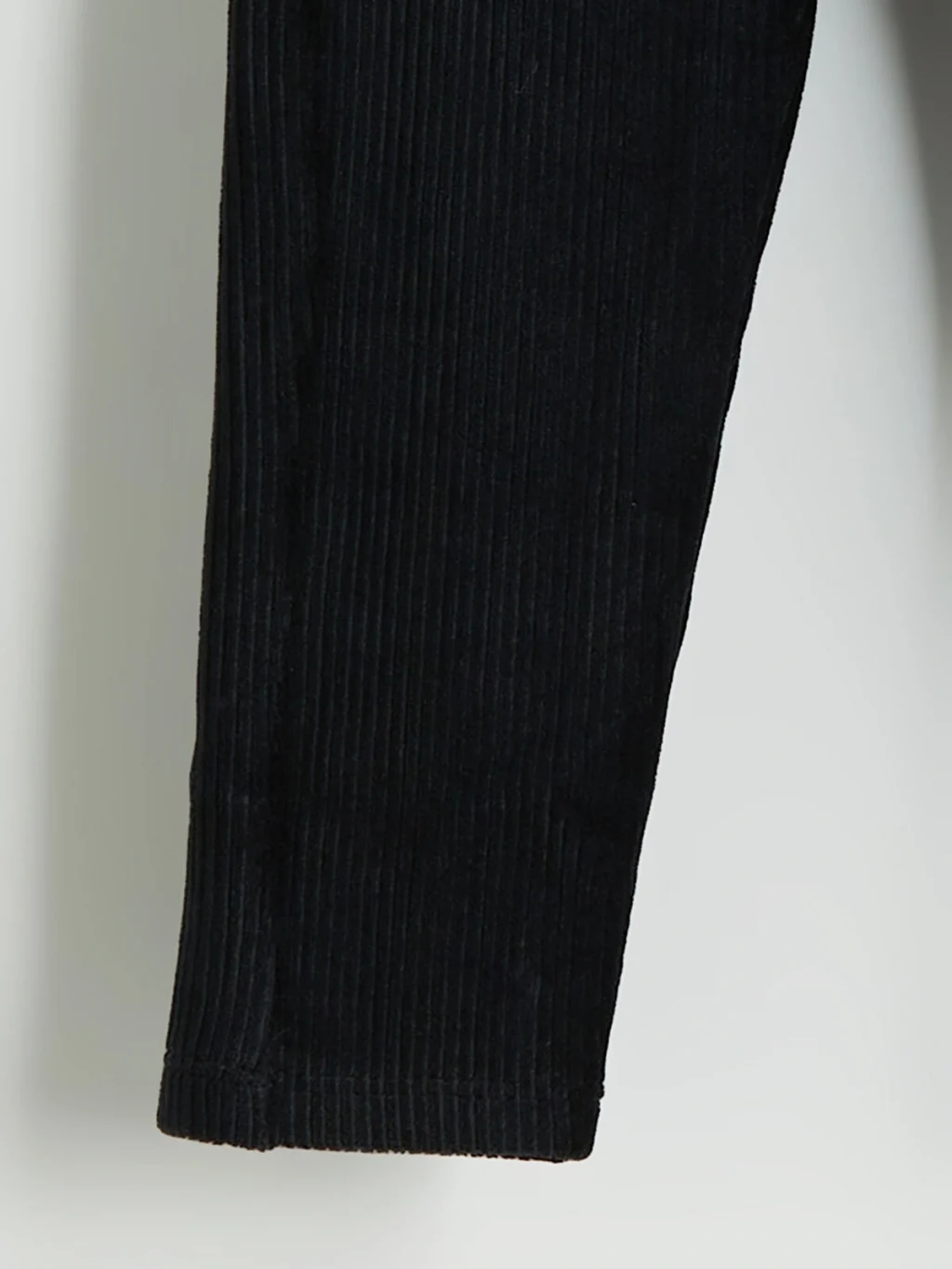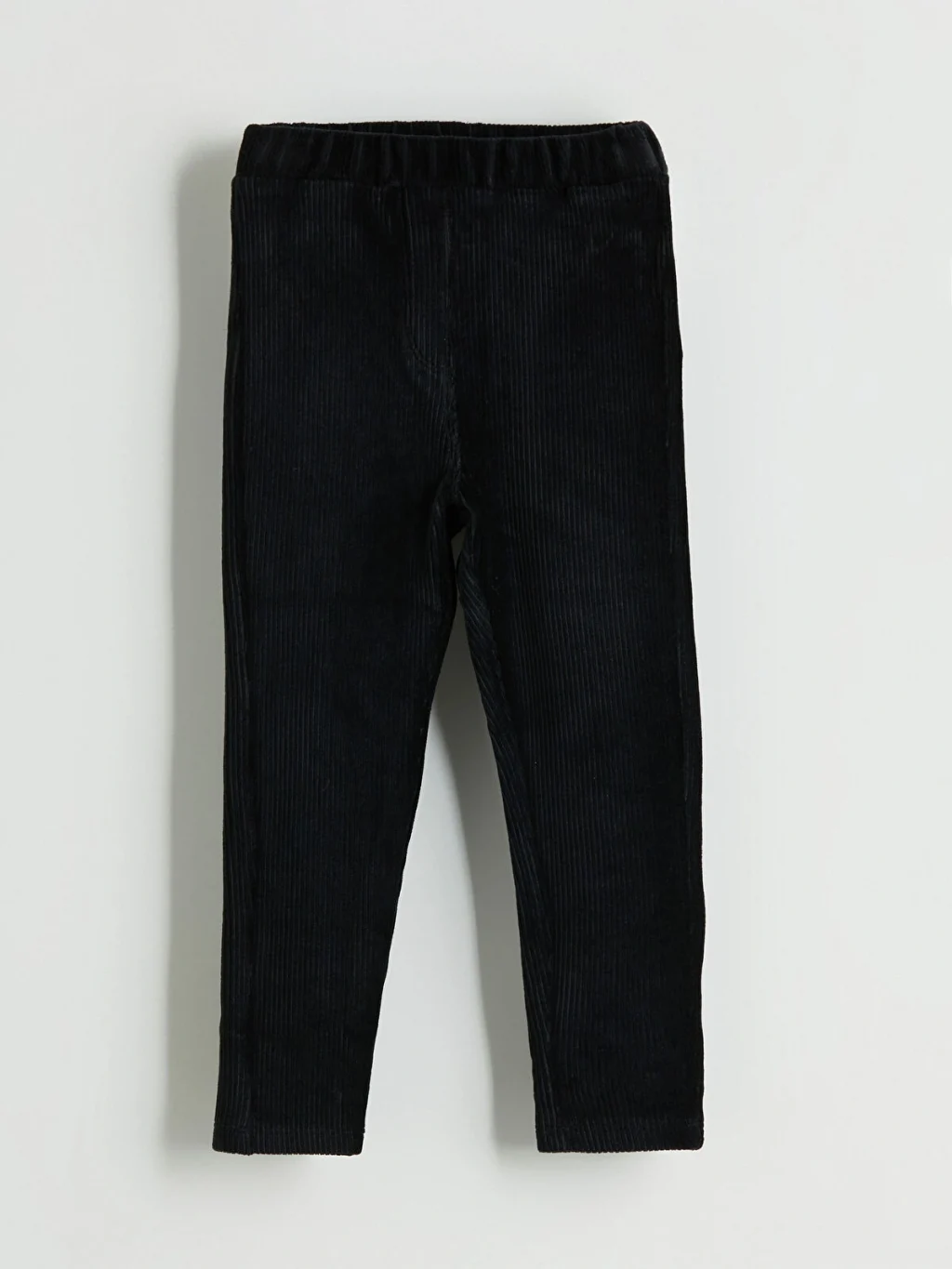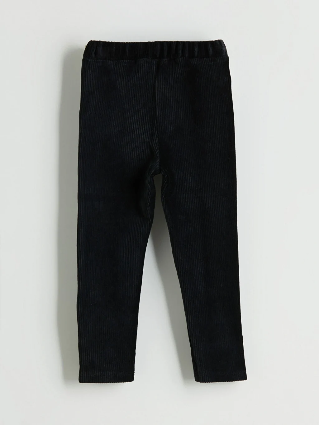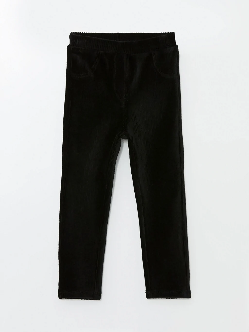Beli lastikli kız çocuk eşofman altı, kalın kadife kumaştan üretilmiştir ve ön ceplere sahiptir.