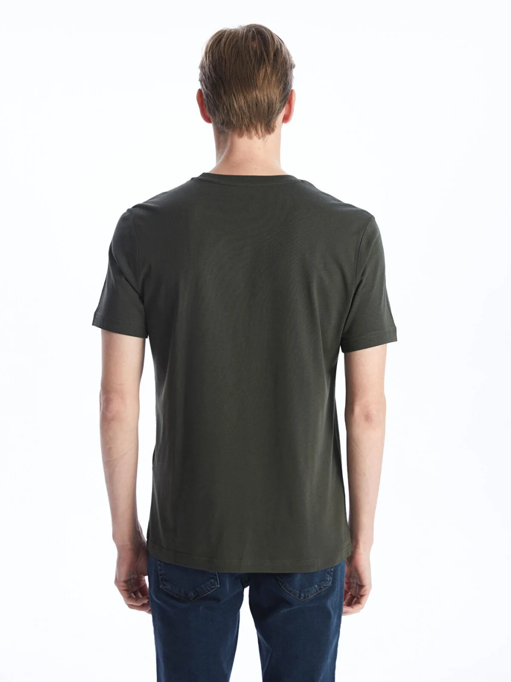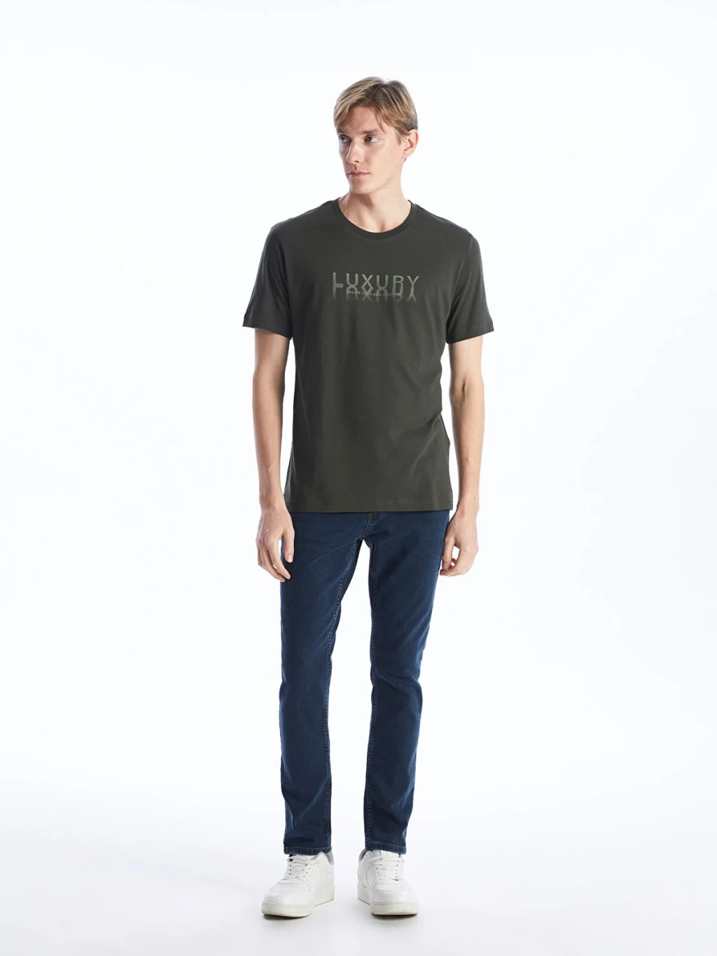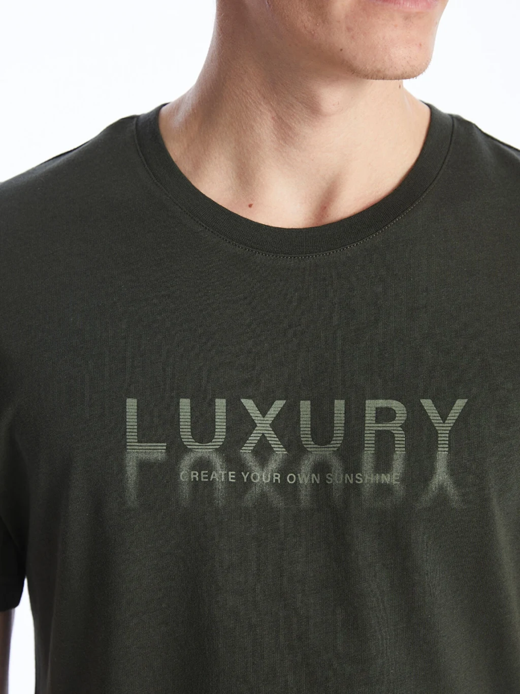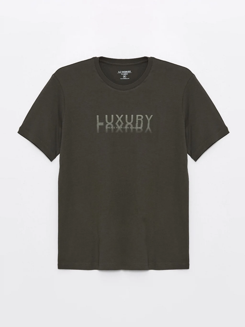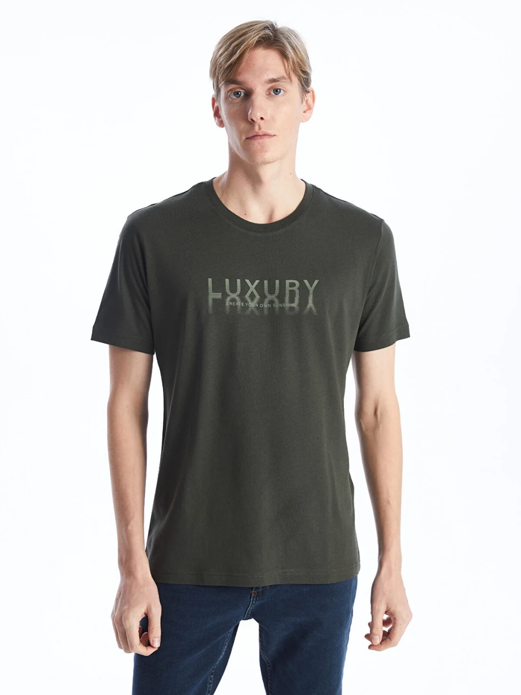 Rahat kalıplı, bisiklet yaka ve kısa kollu erkek tişört, penye kumaştan üretilmiştir ve önü yazı baskılıdır.