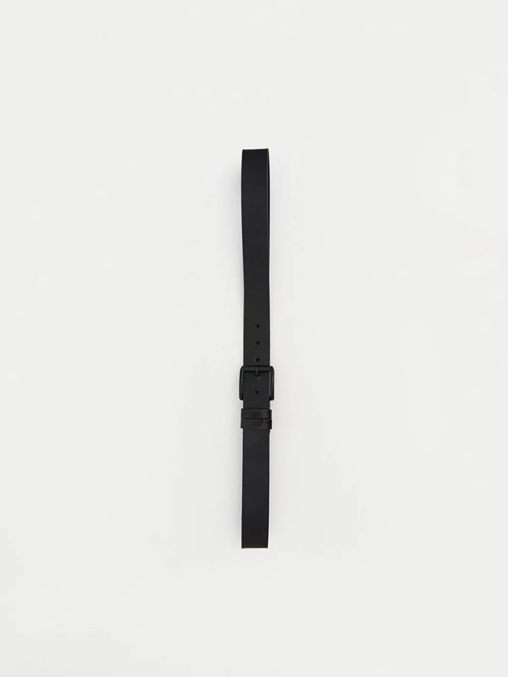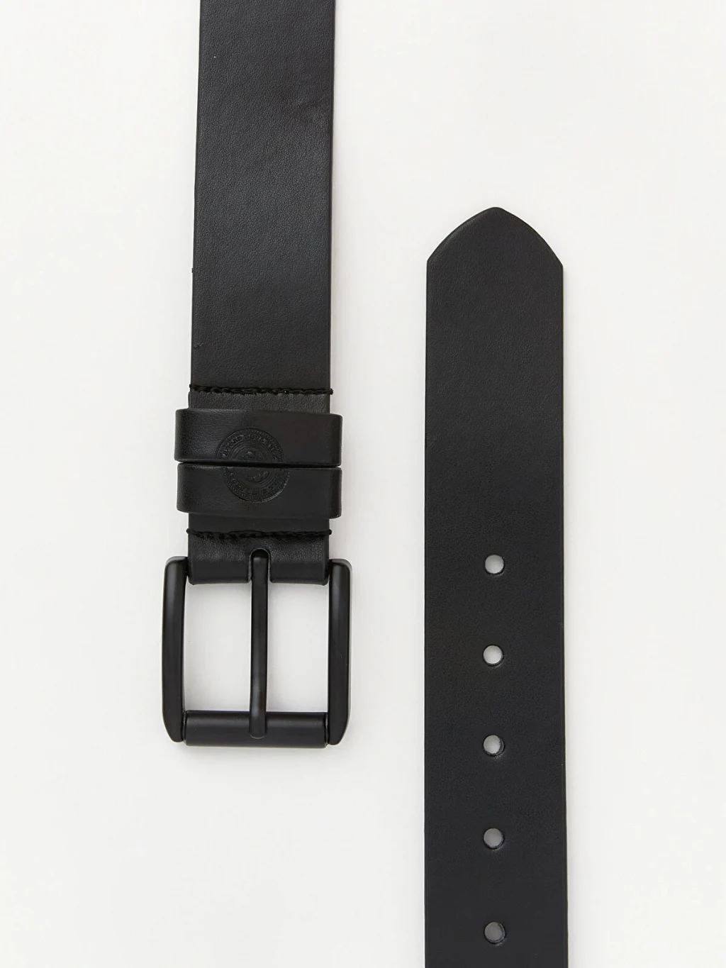 Tek dilli metal toka kapamalı erkek kemer, ayarlanabilir deliklere ve kabartma detaylı bir köprüye sahiptir.
