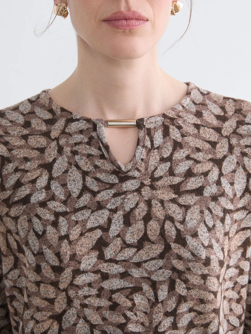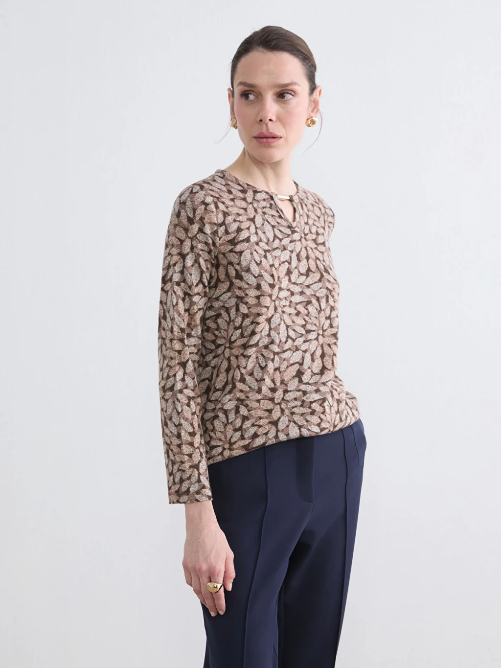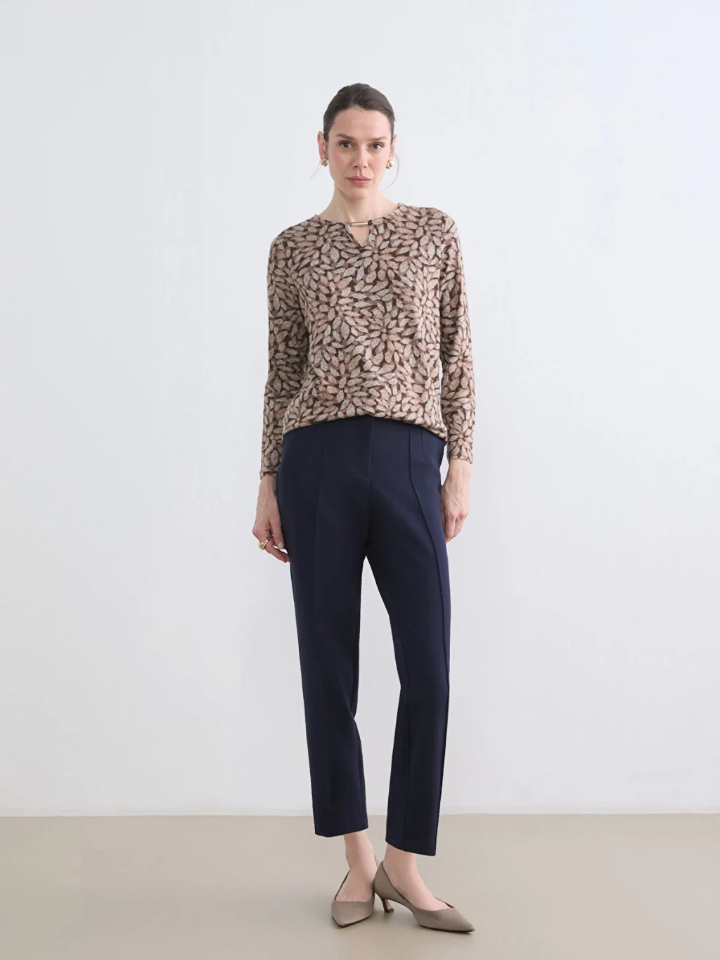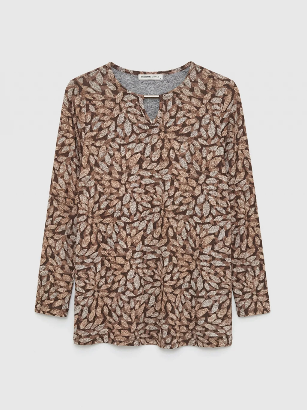 LCW Grace Bej Bisiklet Yaka Desenli Bluz