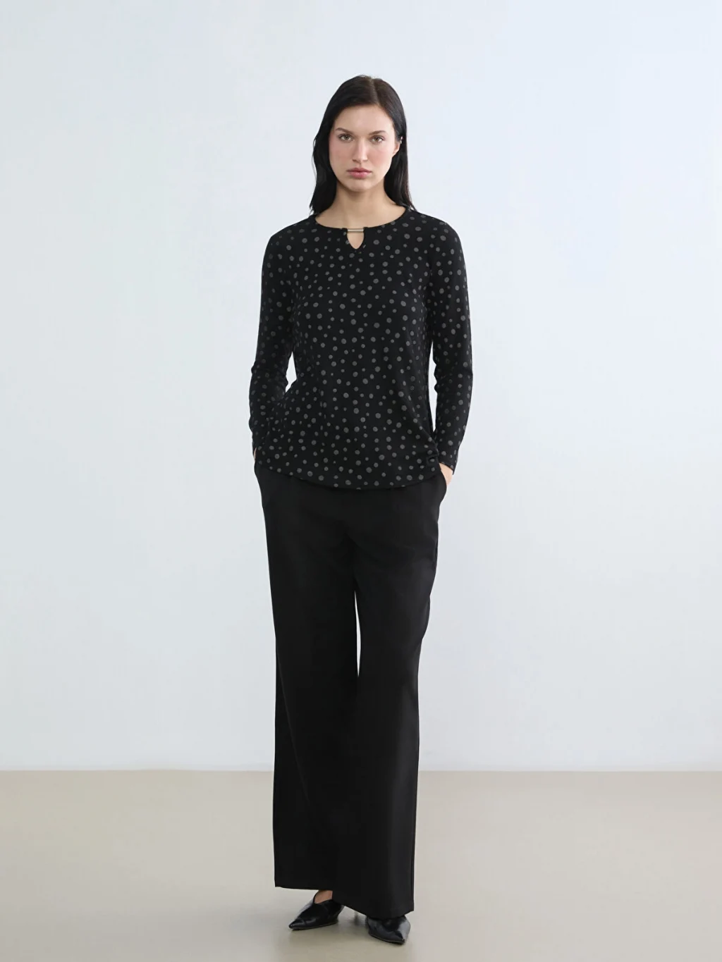 Manken M beden ürün giyiyor