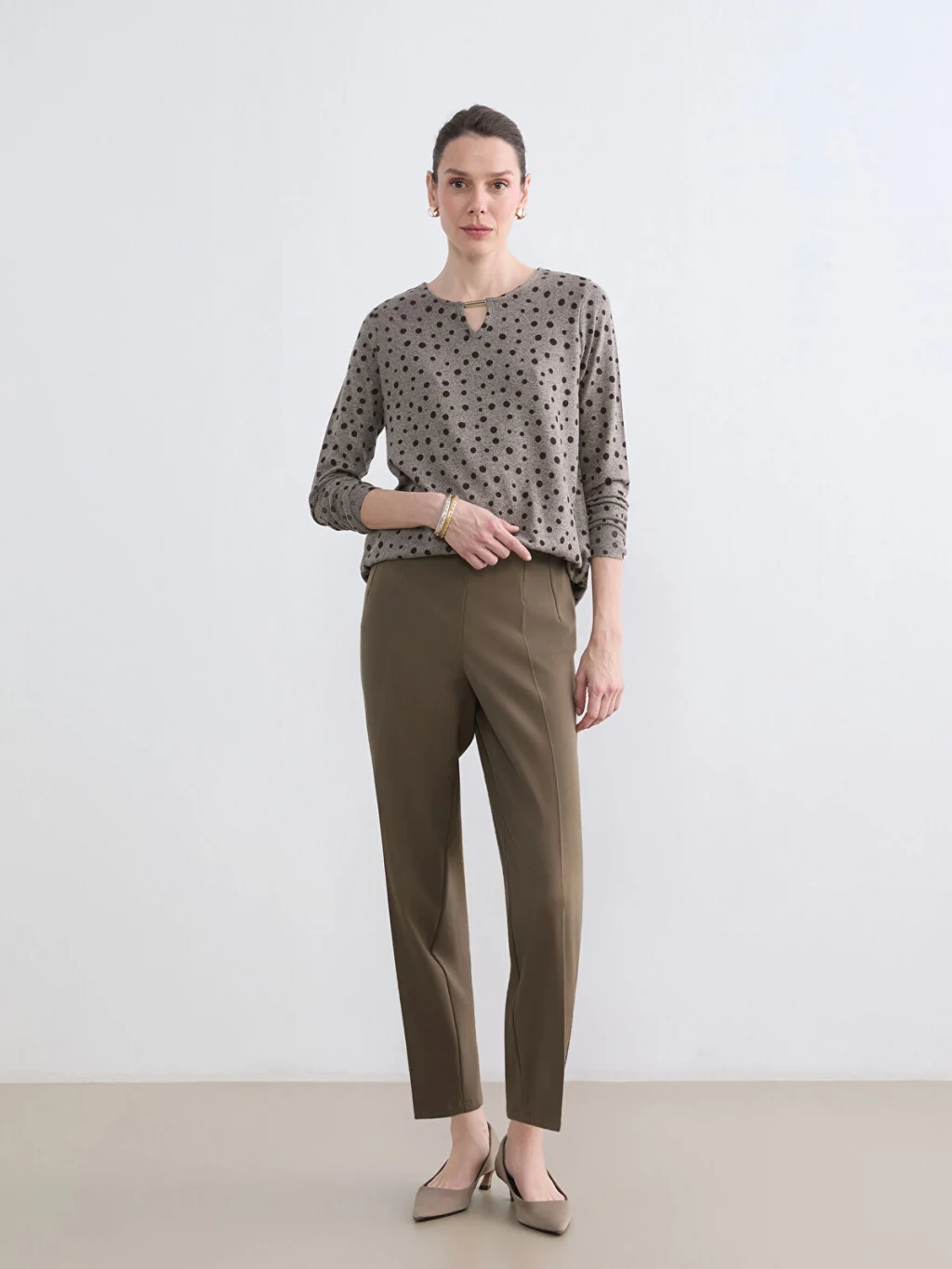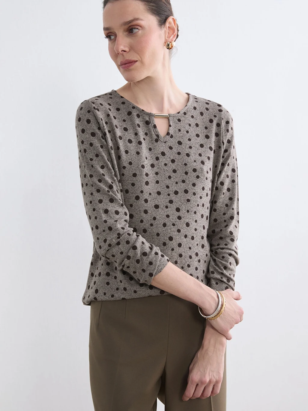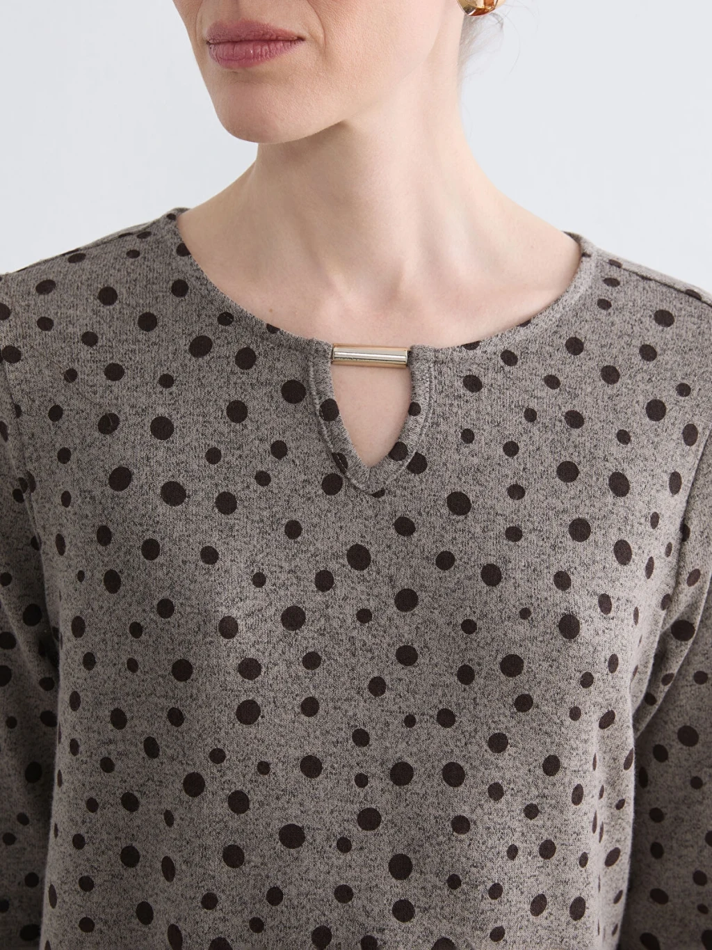 LCW Grace Kahverengi Bisiklet Yaka Desenli Bluz