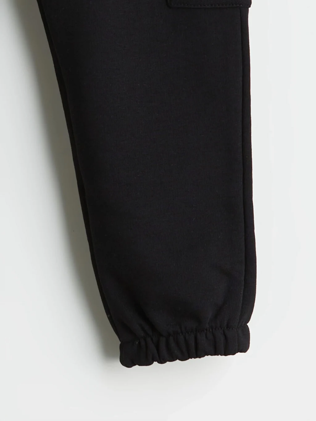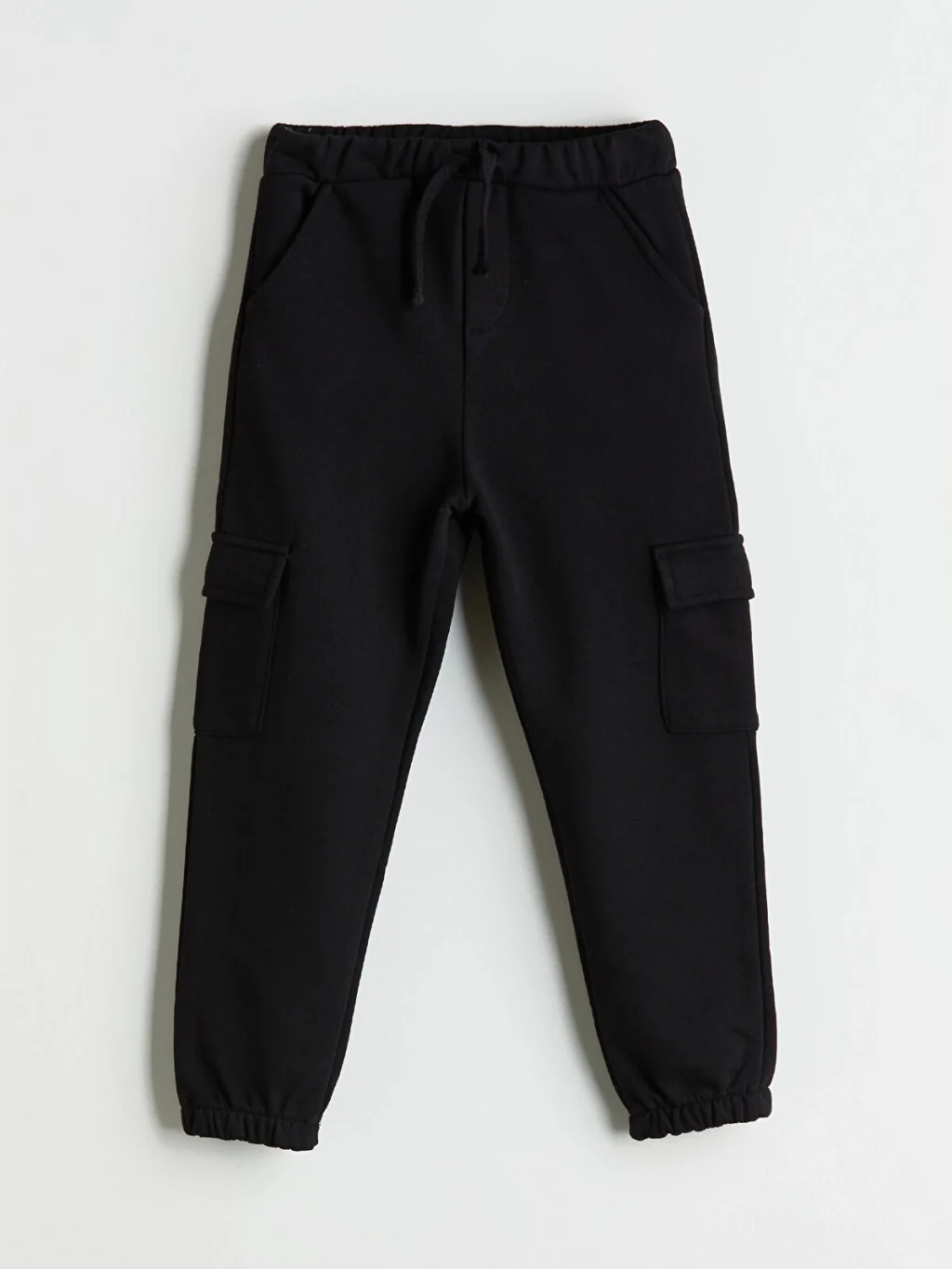 Beli lastikli basic erkek çocuk jogger eşofman altı, 3 iplik kumaştır. Kargo cepli ve paçaları lastiklidir.