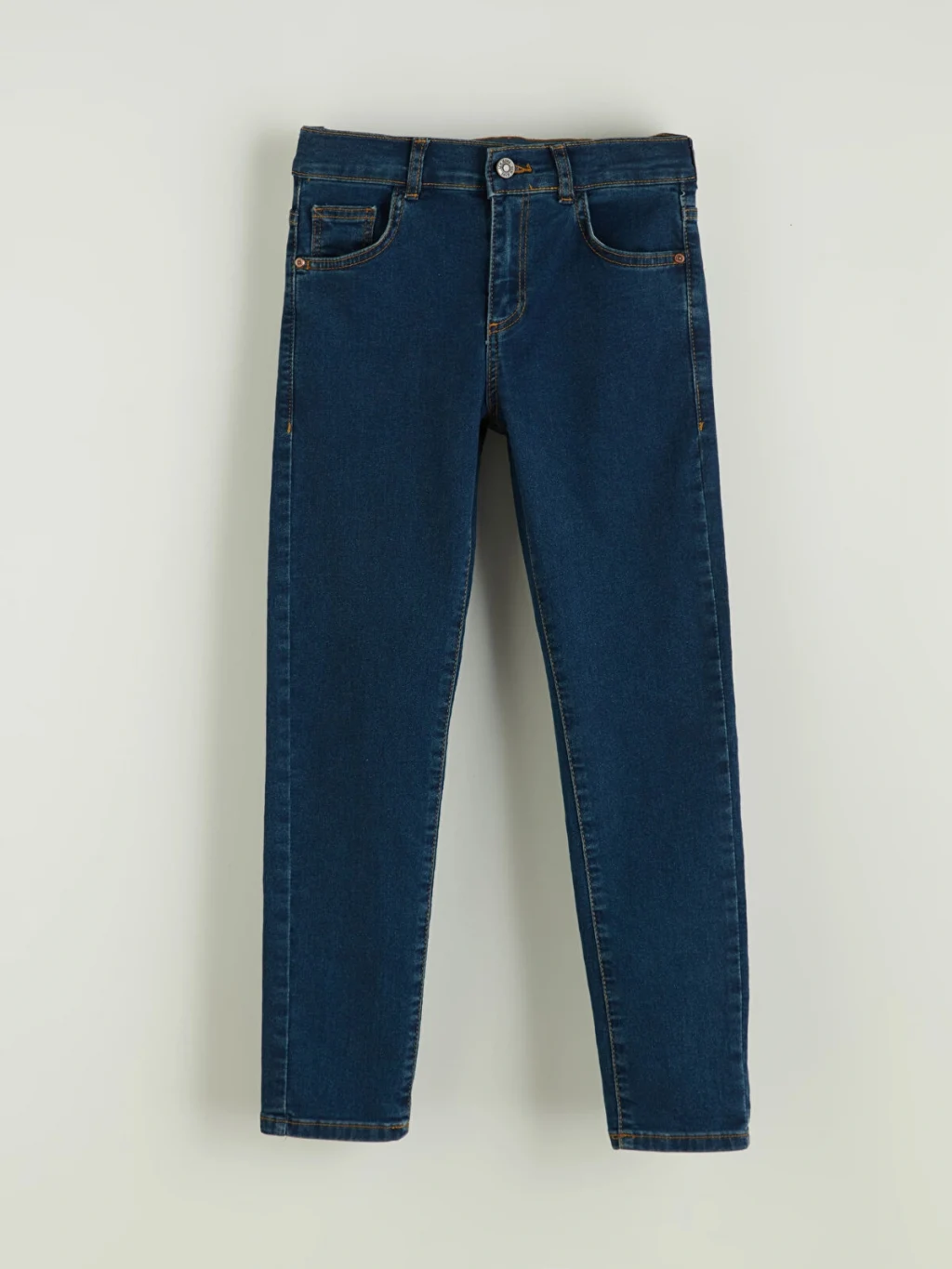 Slim fit jean pantolon, paçaya doğru daralan bir kesime sahiptir. Beli içten ayarlanabilir lastiklidir.
