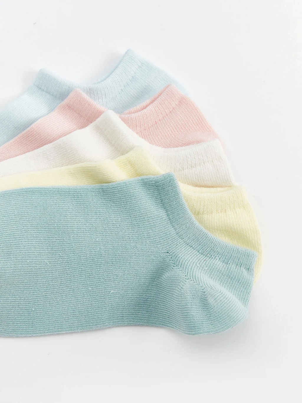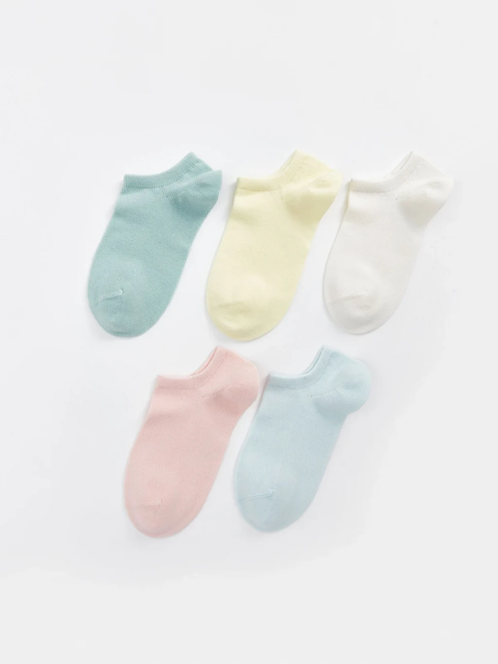 Pamuk karışımlı elyaftan üretilen patik çoraplar, yumuşak ve konforlu bir dokuya sahiptir. Düz, sade tasarımıyla doğal bir görünüm sunar ve 5 çift patik çoraptan oluşmaktadır.
