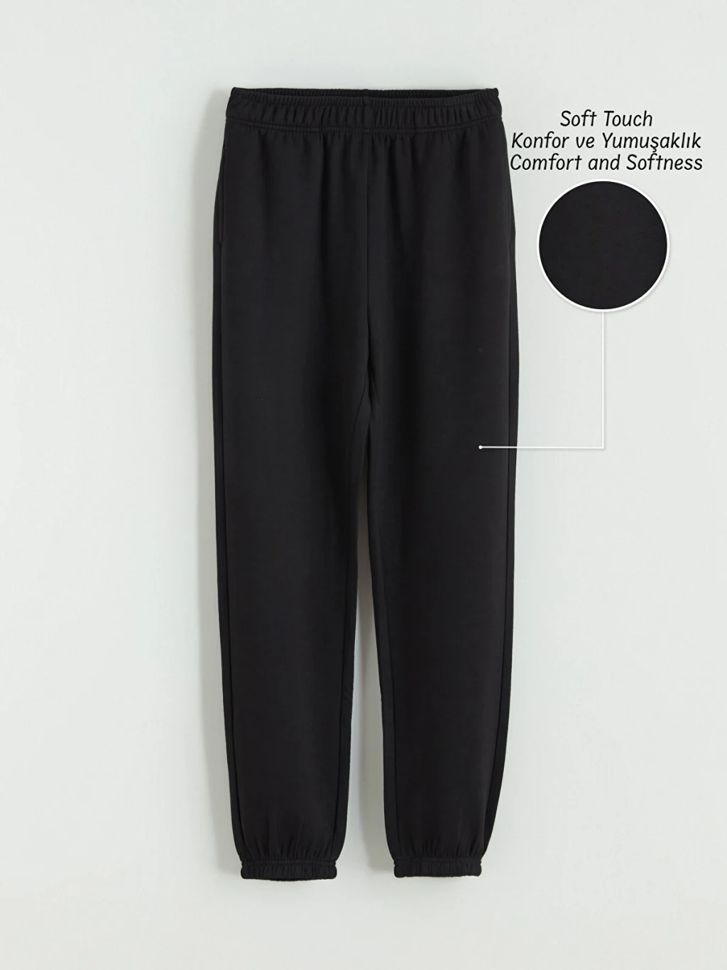Beli ve paçaları lastikli kız çocuk eşofman altı, desensiz kumaştan üretilmiştir ve yan ceplere sahiptir