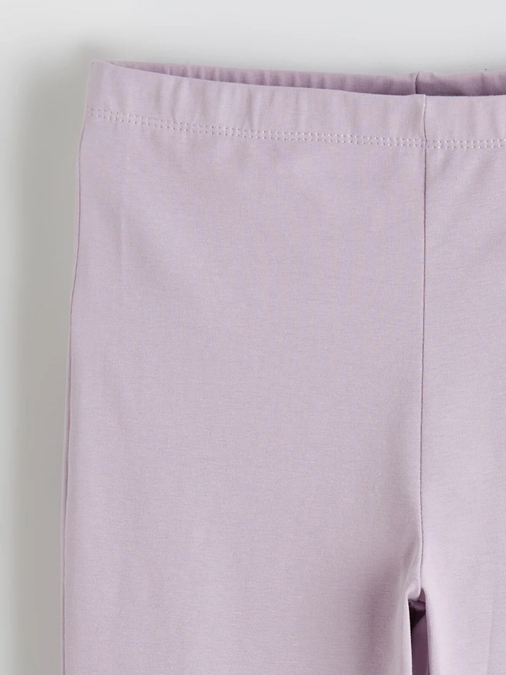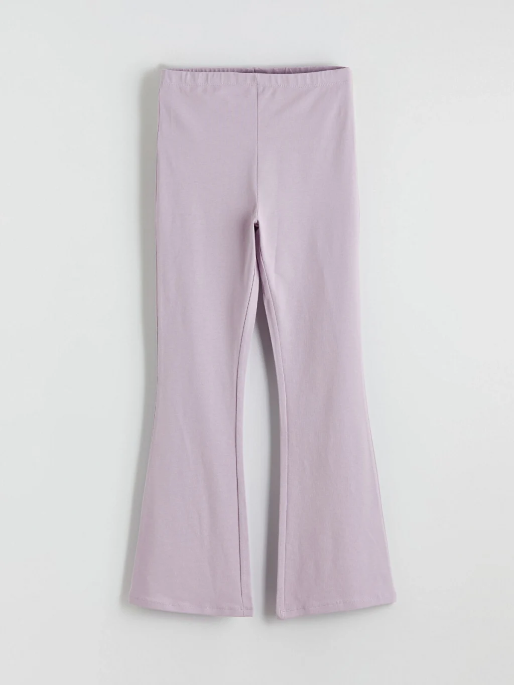 Penye kumaştan üretilen kız çocuk tayt, beli lastikli bir tasarıma ve ispanyol paça kesime sahiptir.
