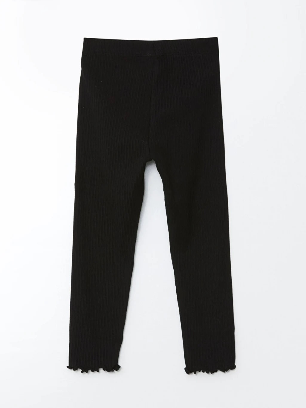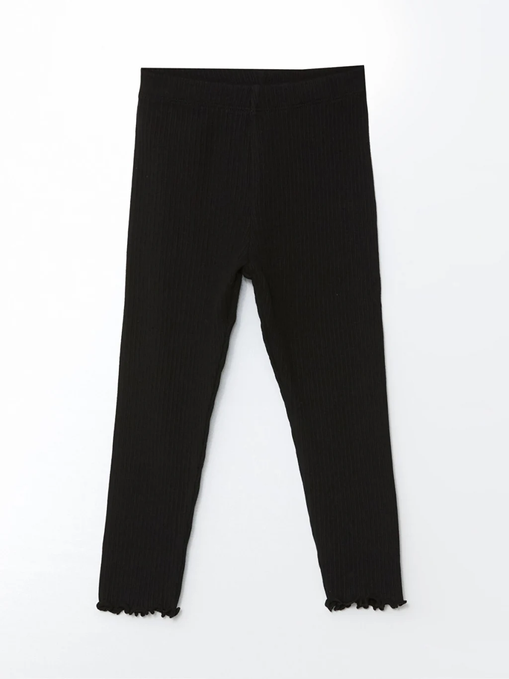 Yüksek pamuk içerikli fitilli penye kumaştan üretilen kız çocuk tayt, beli lastikli ve paçaları fırfır detaylıdır.