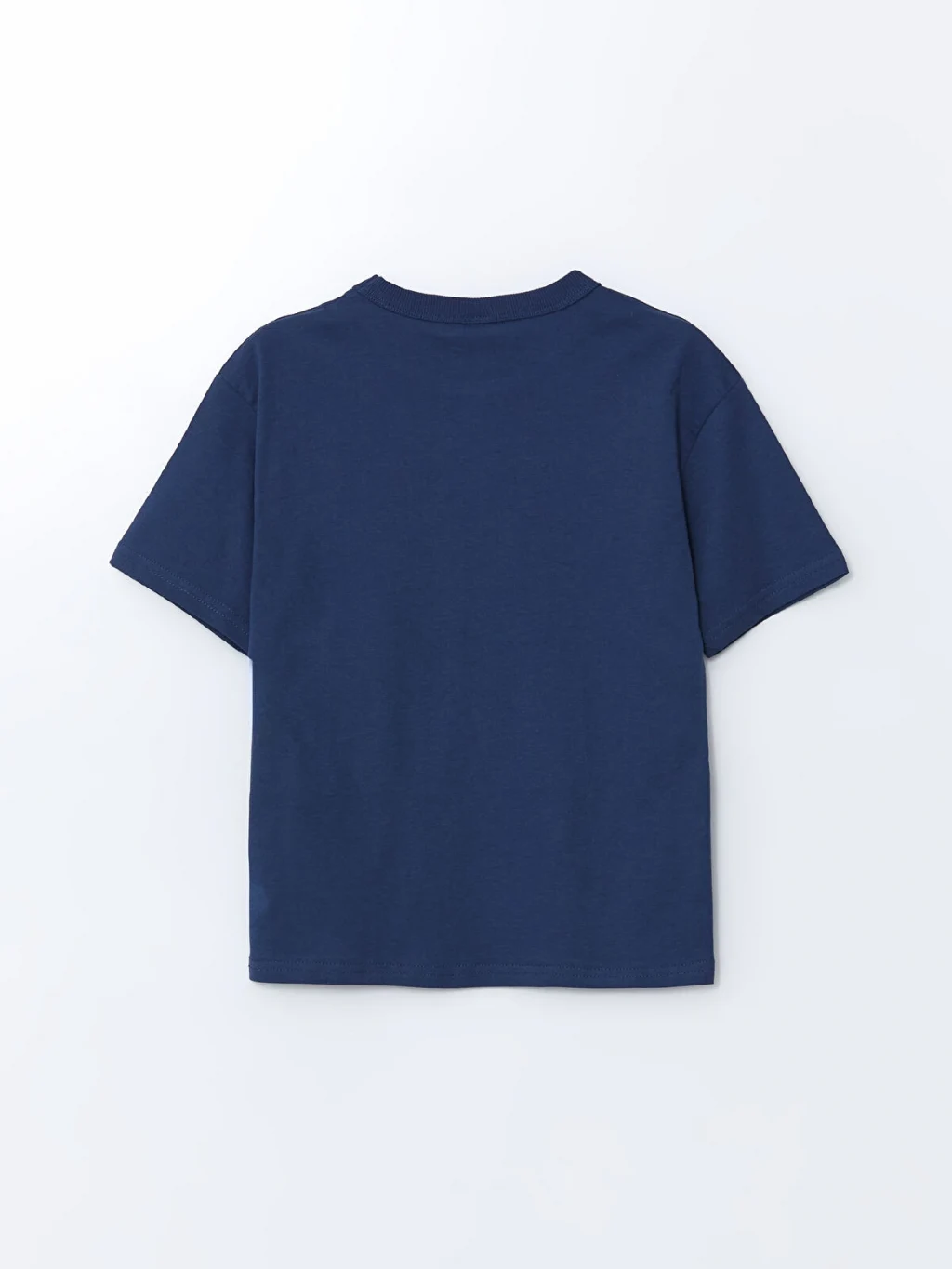 Bisiklet yaka ve kısa kollu erkek çocuk tişört, %100 pamuklu penye kumaştan üretilmiştir. Önü harf ve yazı baskılıdır.