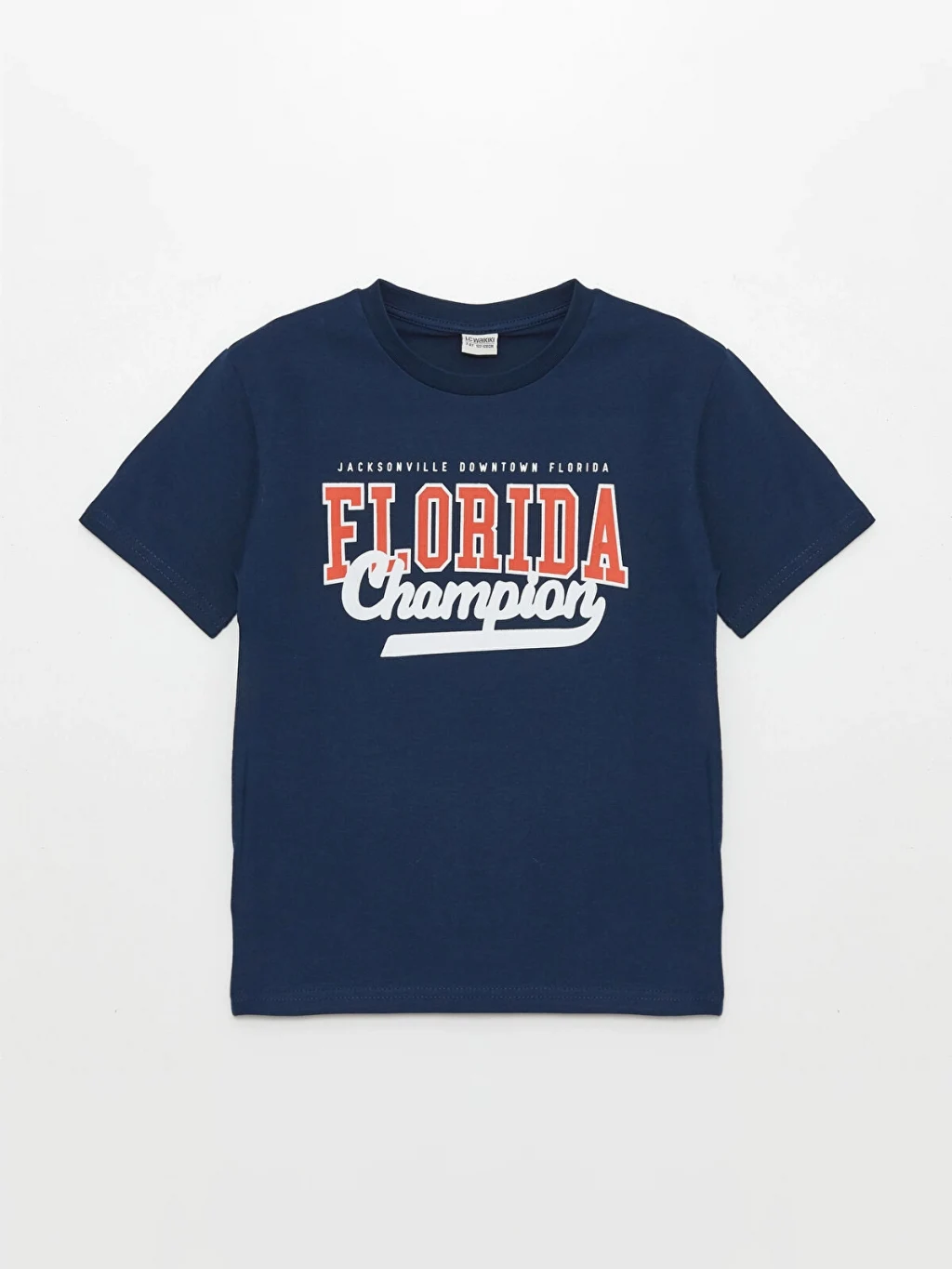 LCW Kids Lacivert Bisiklet Yaka Baskılı Kısa Kollu Erkek Çocuk Tişört