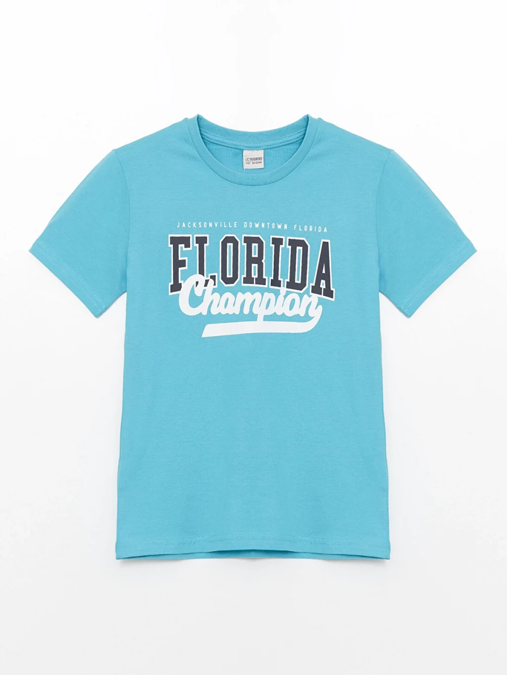 Bisiklet yaka ve kısa kollu erkek çocuk tişört, %100 pamuklu penye kumaştan üretilmiştir. Önü yazı baskılıdır.