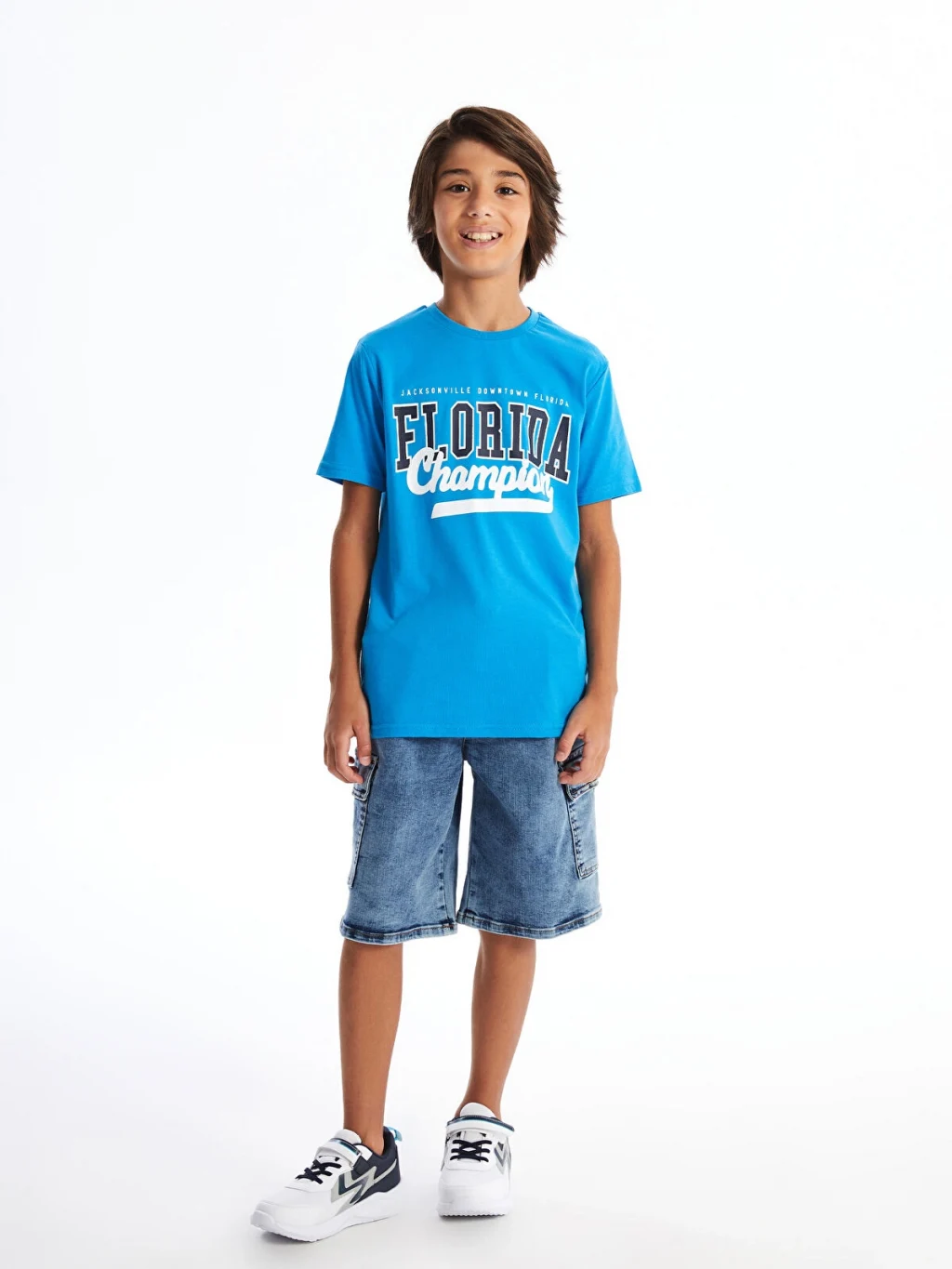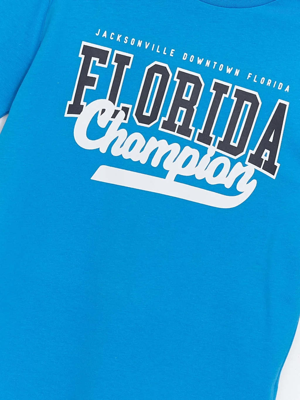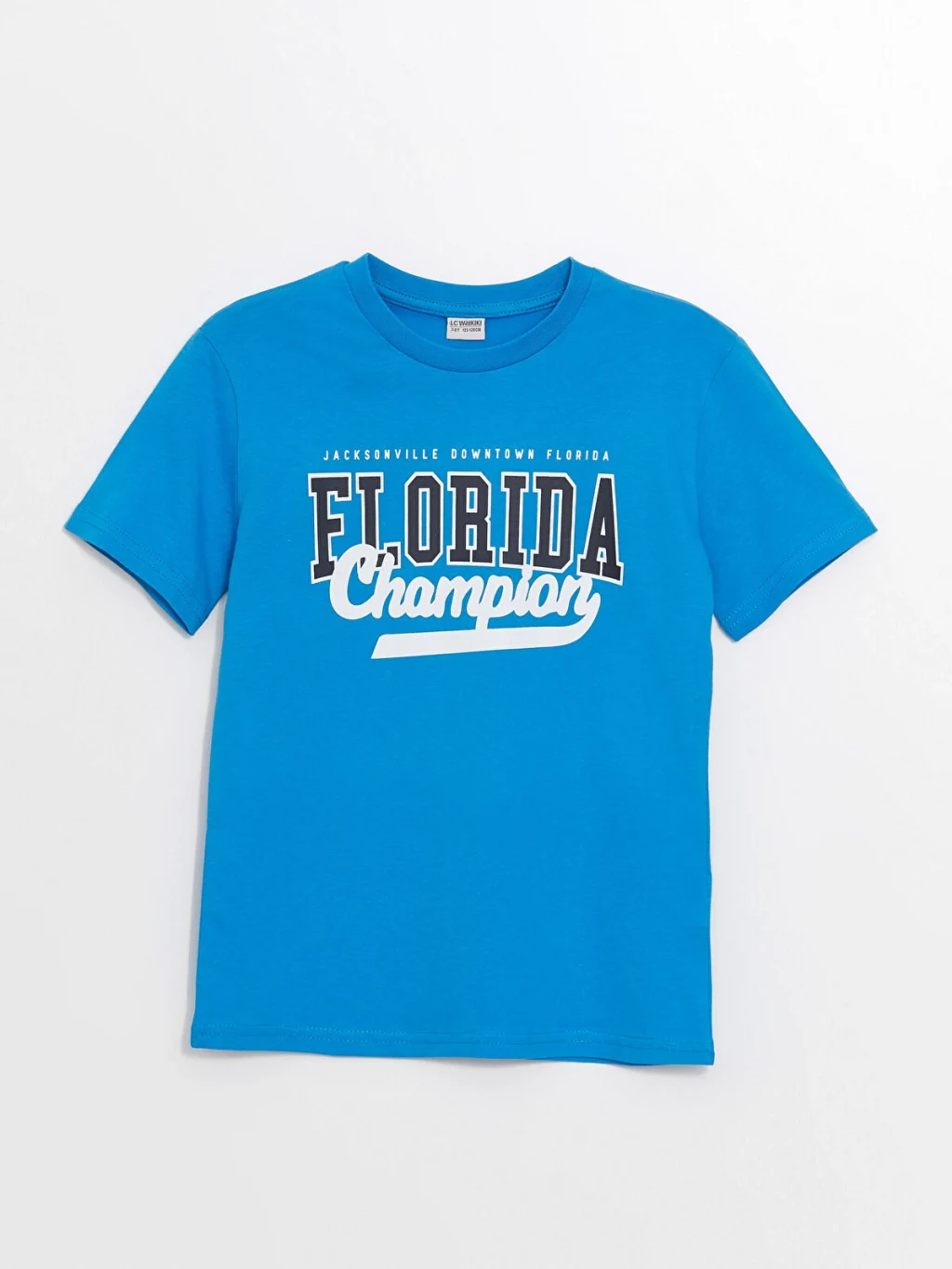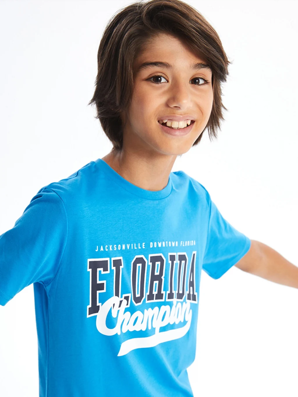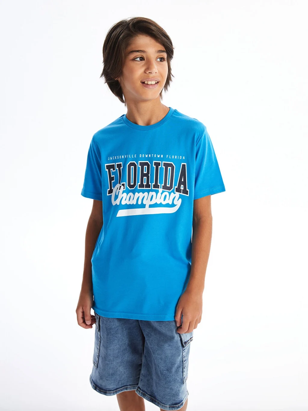 Bisiklet yaka ve kısa kollu erkek çocuk tişört, %100 pamuk penye kumaştan üretilmiştir. Standart kalıplı tişörtün ön yüzü yazı baskılıdır.
