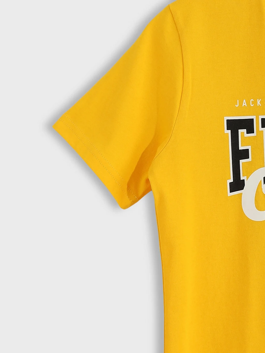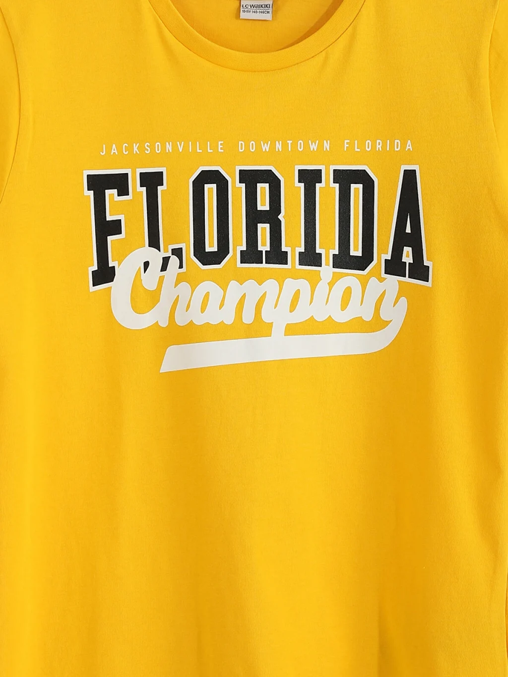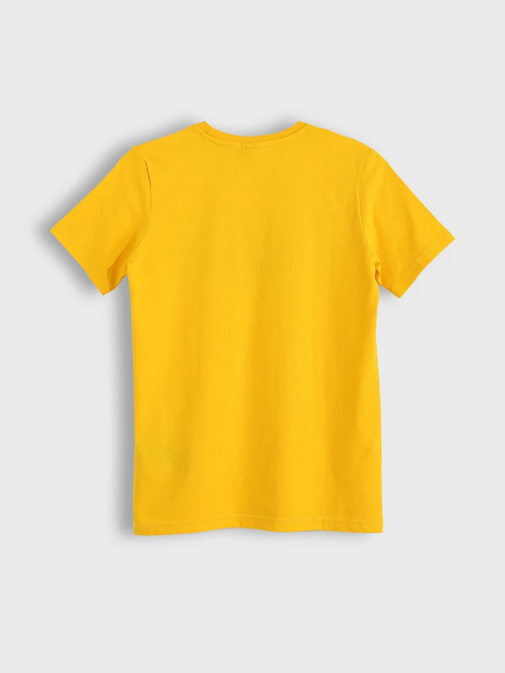LCW Kids Sarı Bisiklet Yaka Baskılı Kısa Kollu Erkek Çocuk Tişört