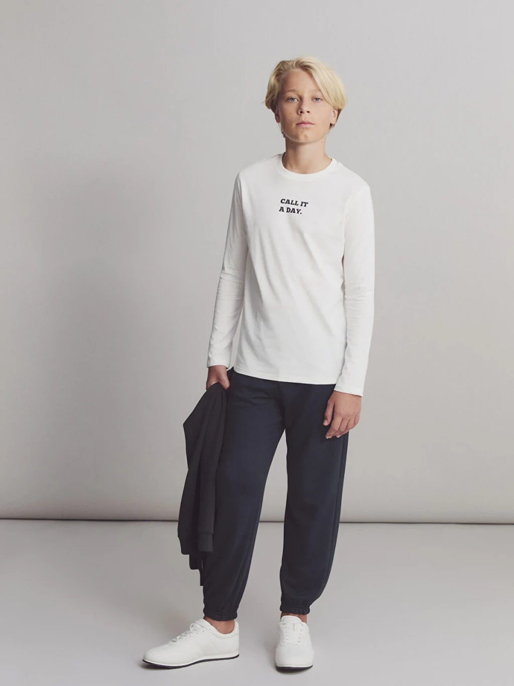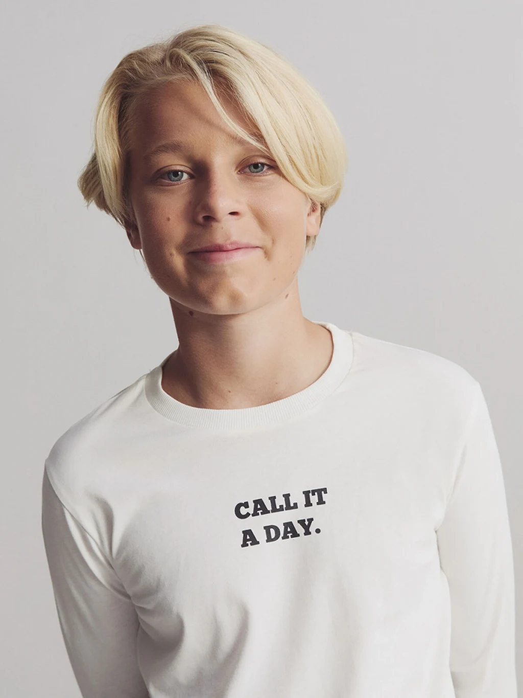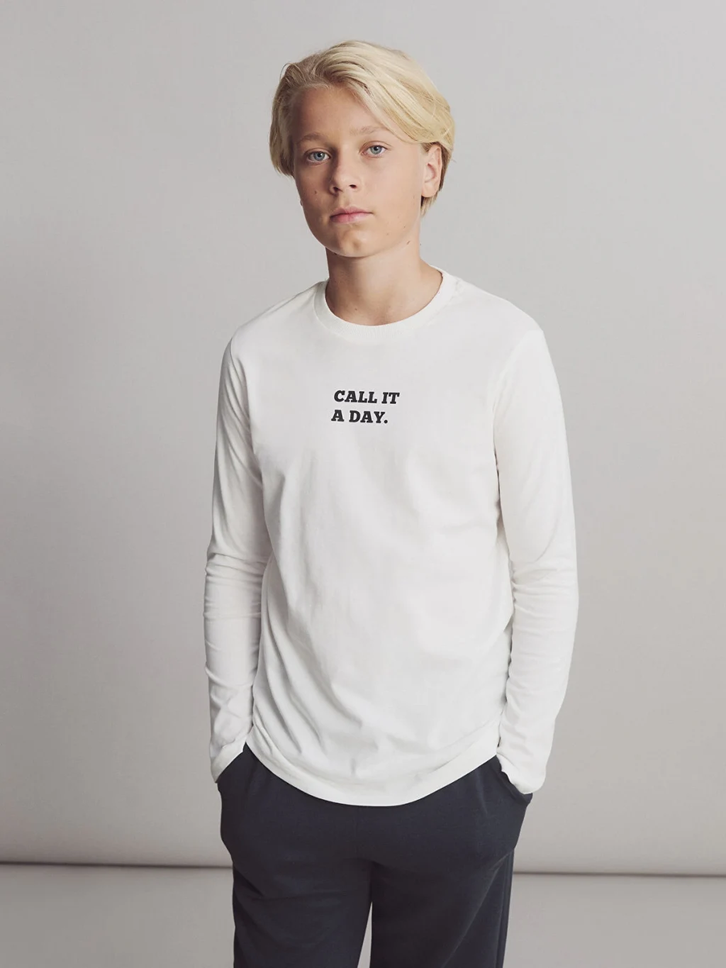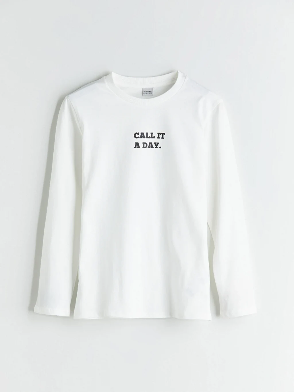 Bisiklet yaka yazı baskılı tişört, pamuklu penye kumaştan üretilmiştir. Uzun kolludur.
