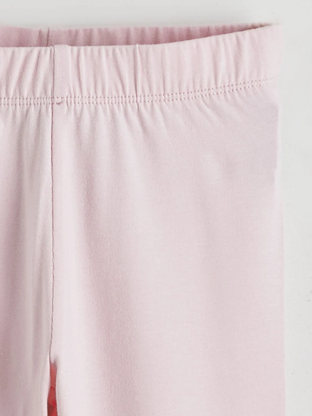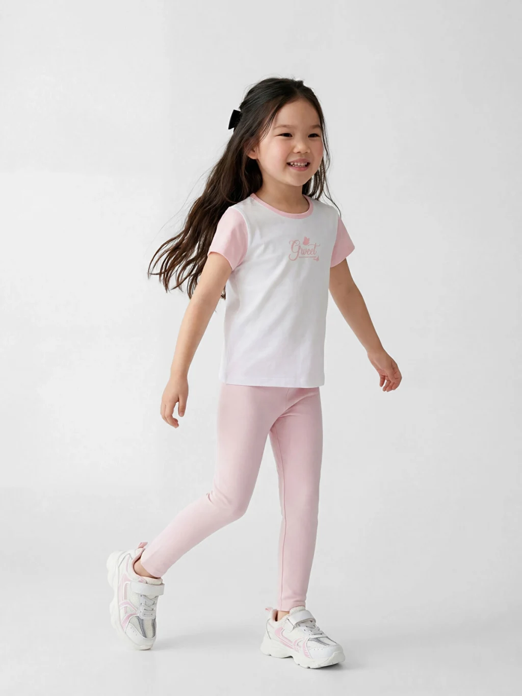 Normal bel kesimli kız çocuk tayt, beli lastiklidir. Düz ve desensiz kumaşa sahip olan ürün, uzun paçalıdır.