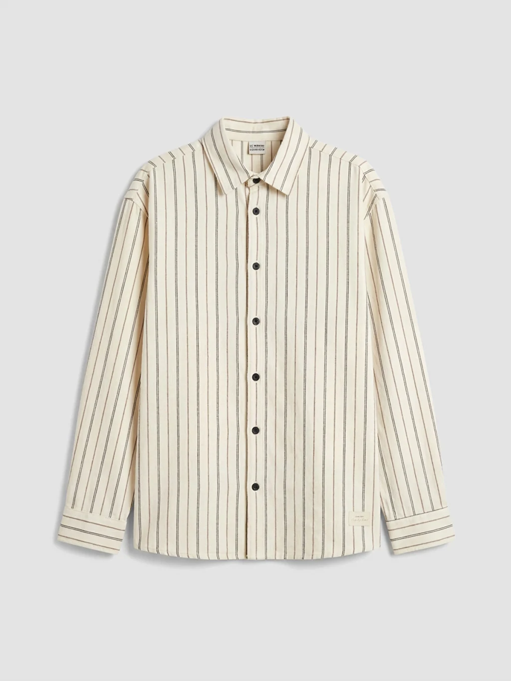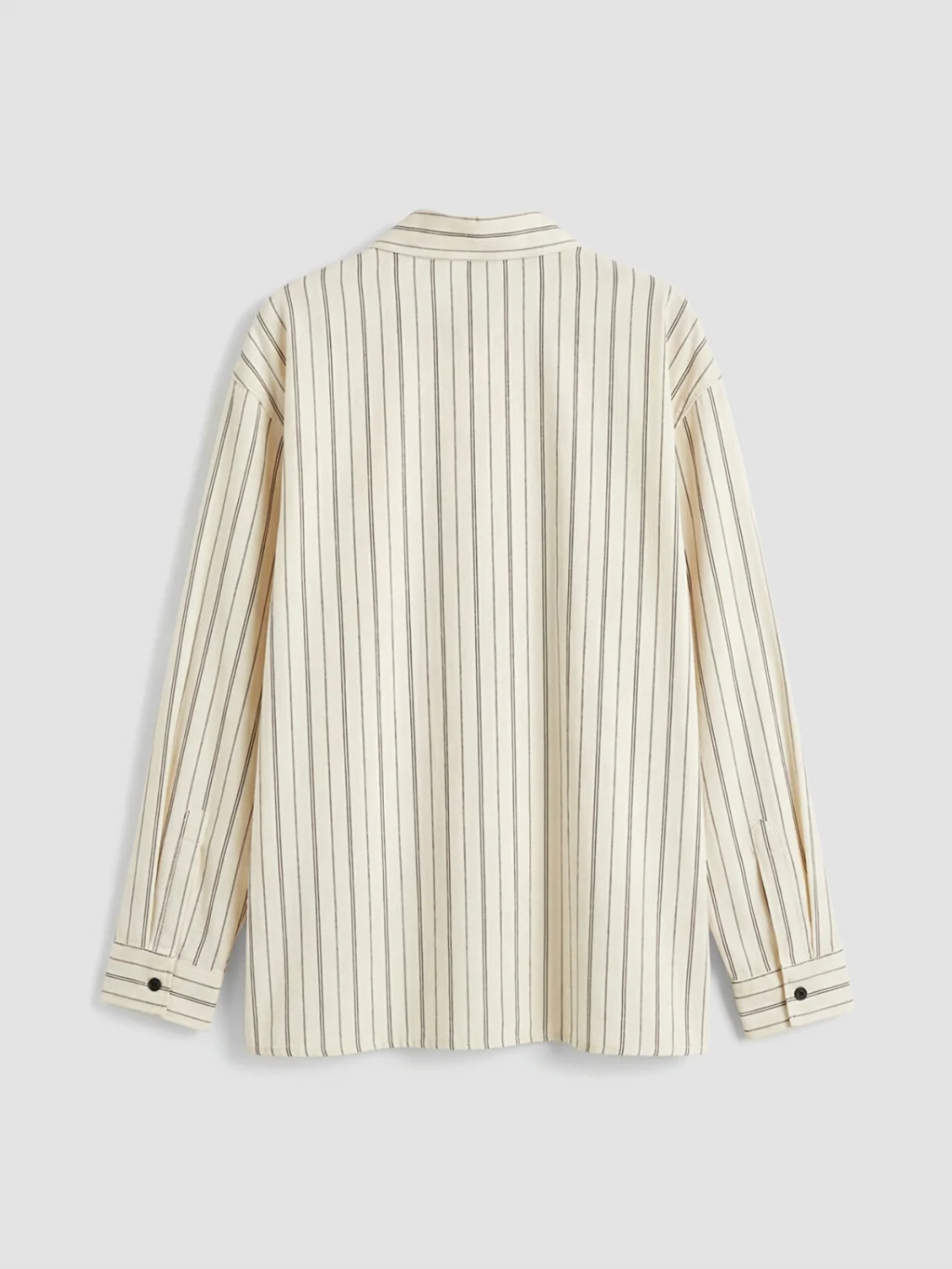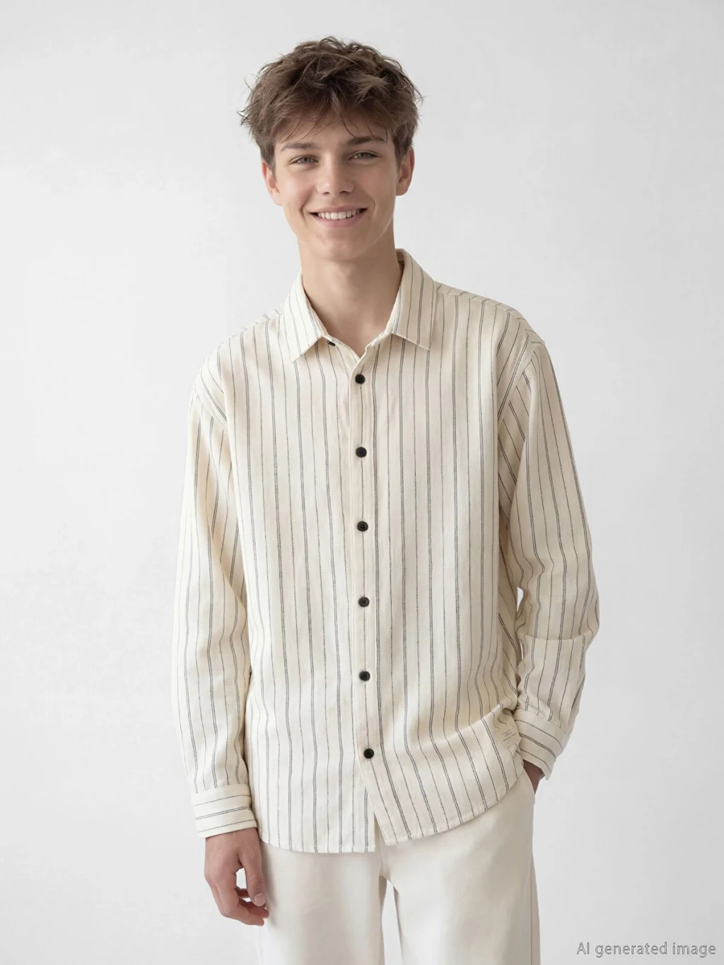 Pamuklu kumaştan üretilmiş, uzun kollu ve çizgili desenli erkek çocuk gömlek, önden düğme kapamalıdır.
