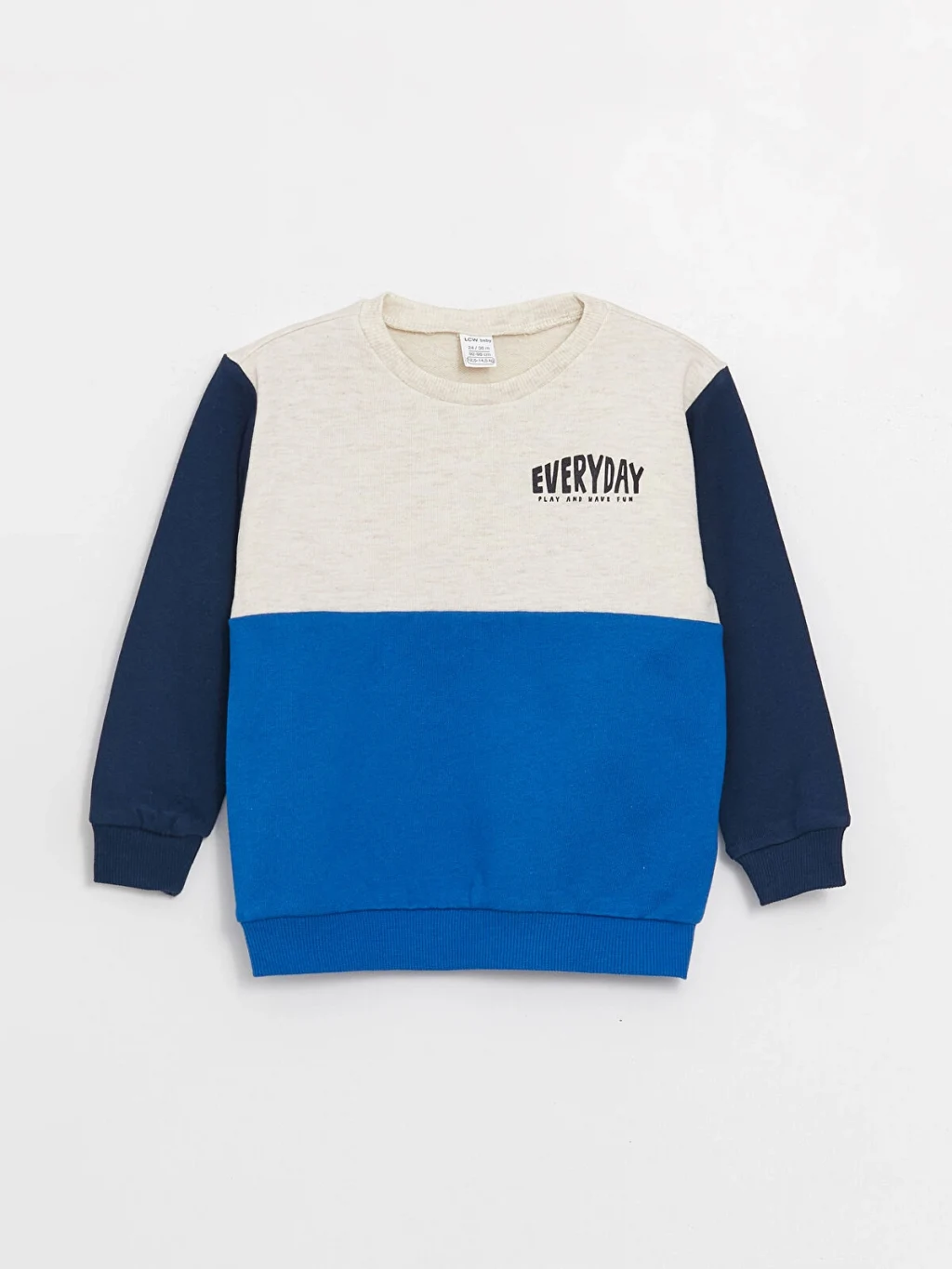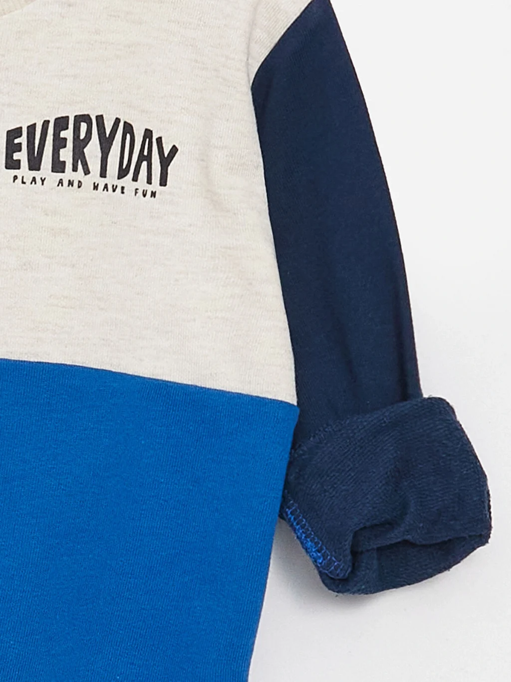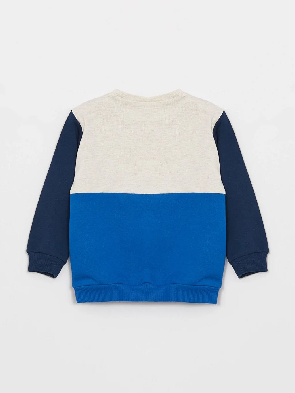 Renk bloklu tasarımı ile dikkat çeken bisiklet yaka sweatshirt, rahat ve havalı erkek bebek kombinlerini tamamlamak için ideal. Pamuk dokusu ile terlemenin kontrol altına alınmasına yardımcı olan tasarım bilekte ve alt kısımda ribanalıdır.