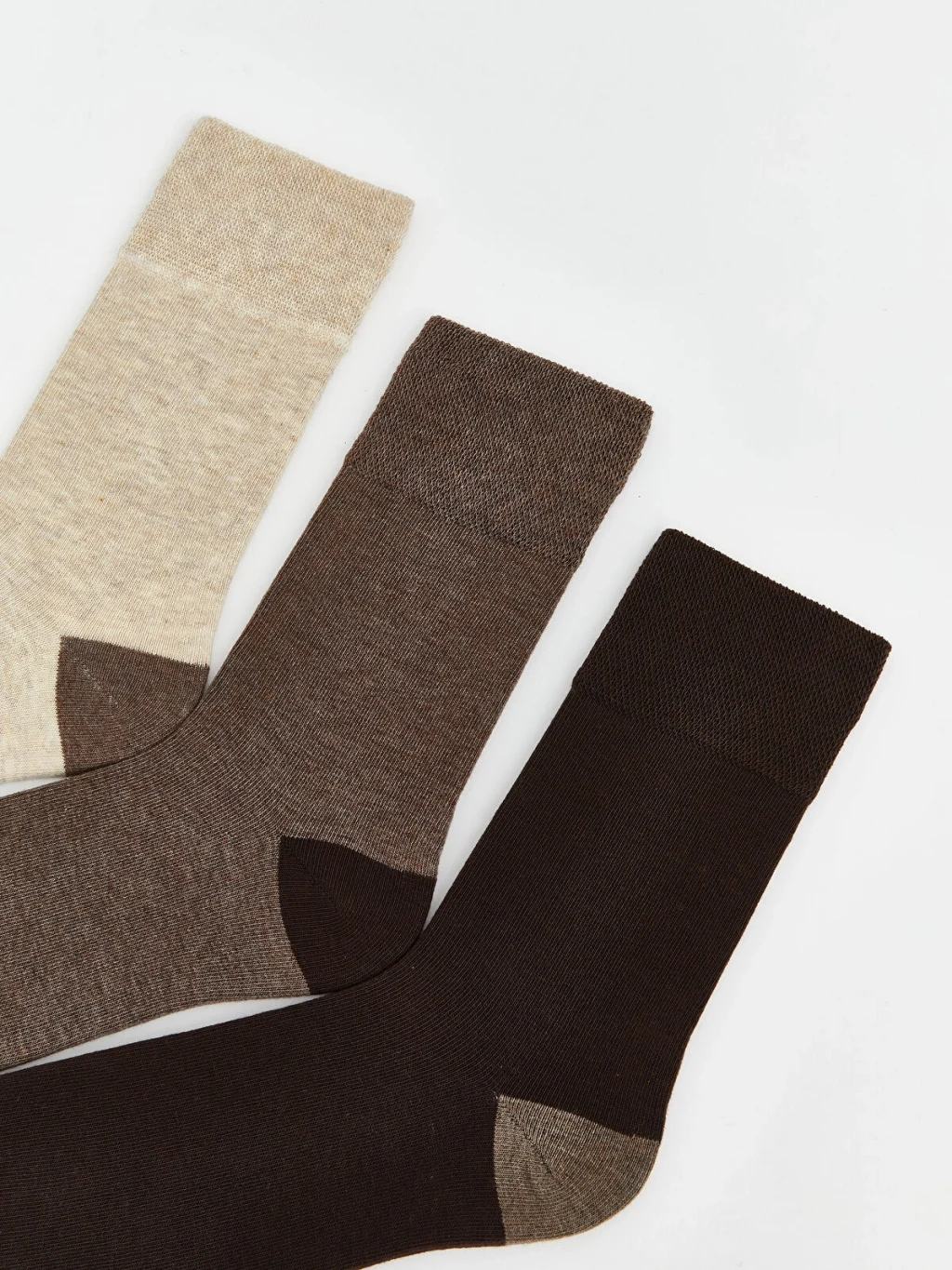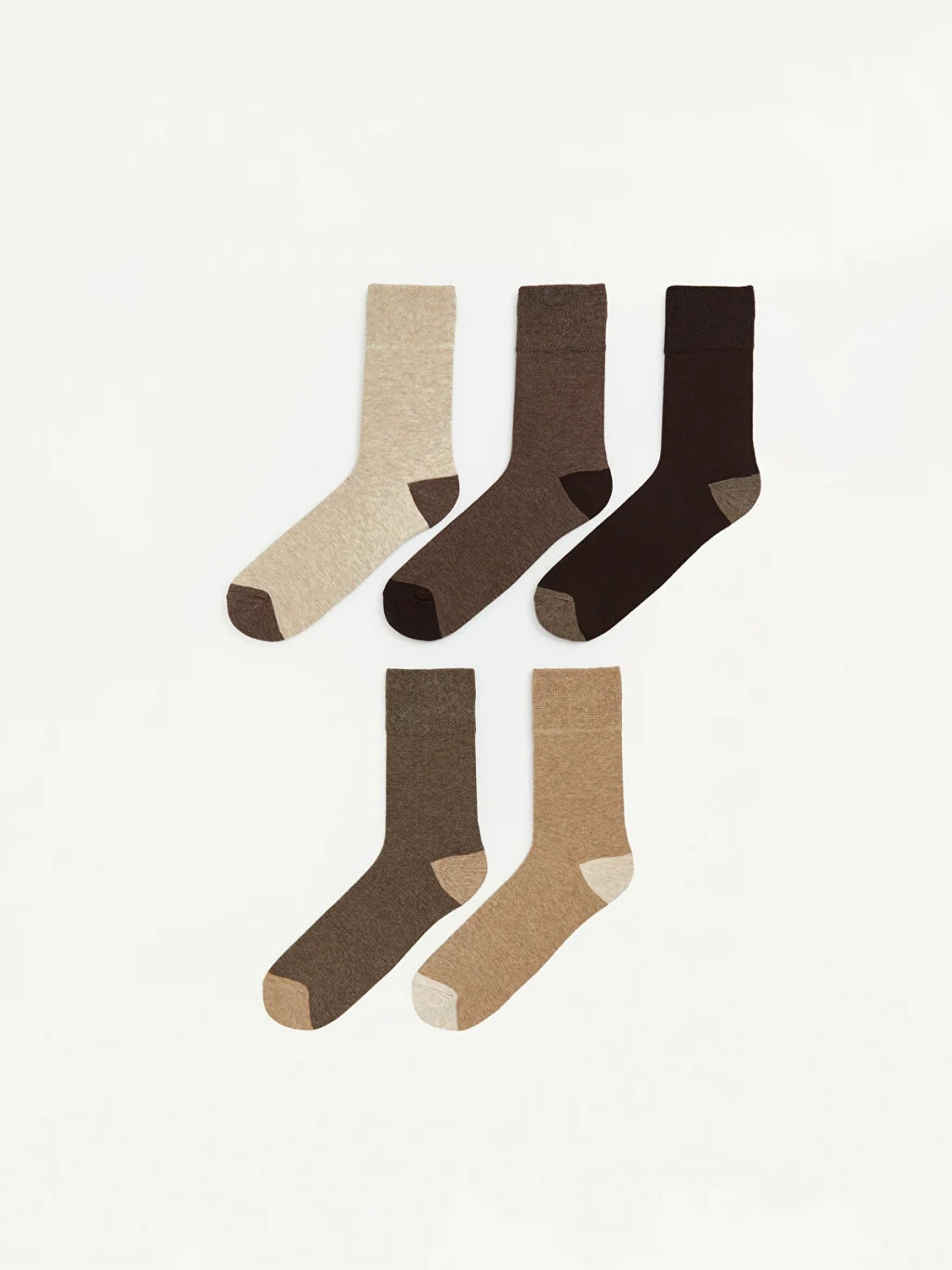 Pamuk karışımlı esnek kumaştan üretilen erkek soket çorap, beşli paket olarak sunulur ve ribana manşetlidir.