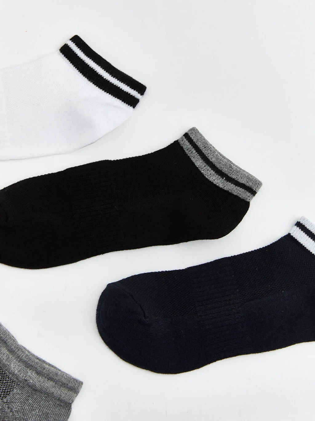 Çoklu paket halinde sunulan erkek patik çorap, çizgili ve düz tasarımlı ribana bilek detayına sahiptir.