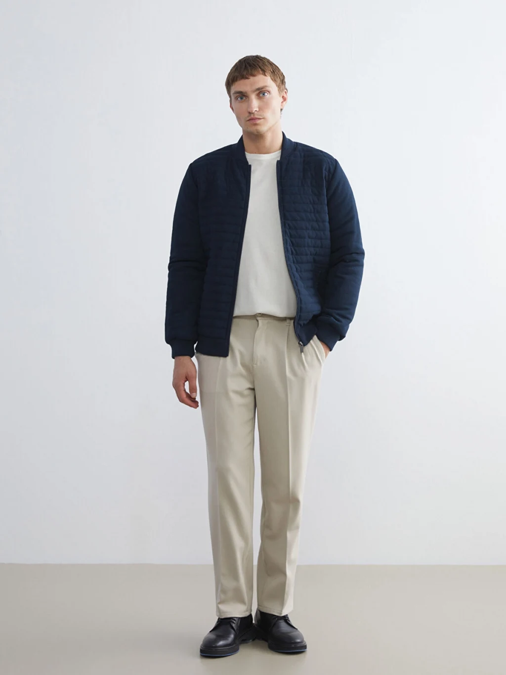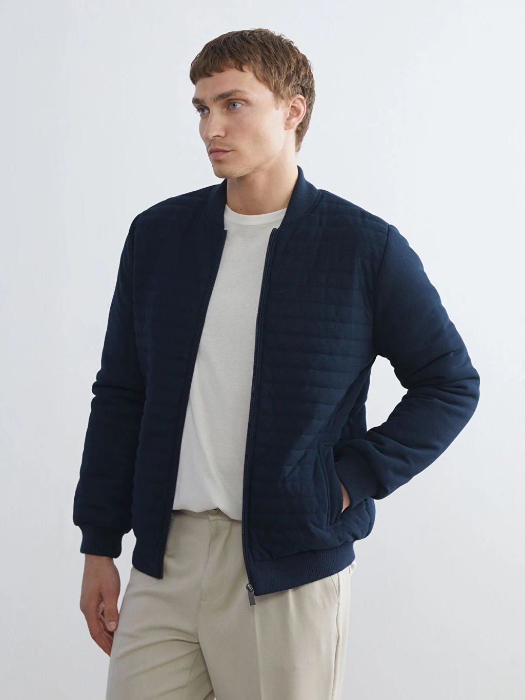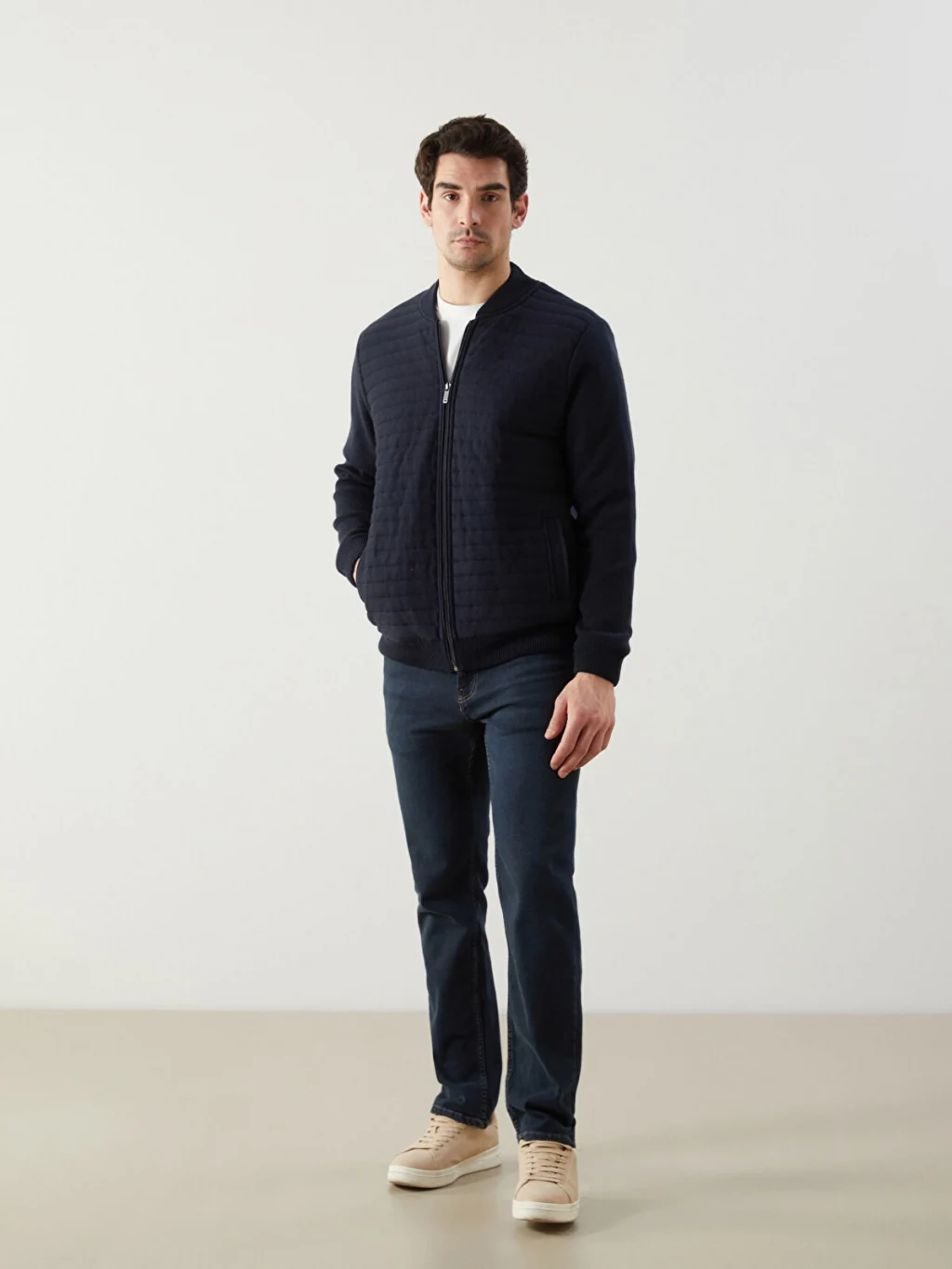 Ribana yaka, uzun kollu erkek hırka, kapitone desenli ince triko kumaştan üretilmiştir. Önden fermuar kapamalıdır ve çift ceplidir. Kolej yaka, uzun kollu erkek hırka, ince triko kumaştan üretilmiştir. Önü fermuar kapamalı, kapitone desenli ve iki yanda cepleri bulunur.