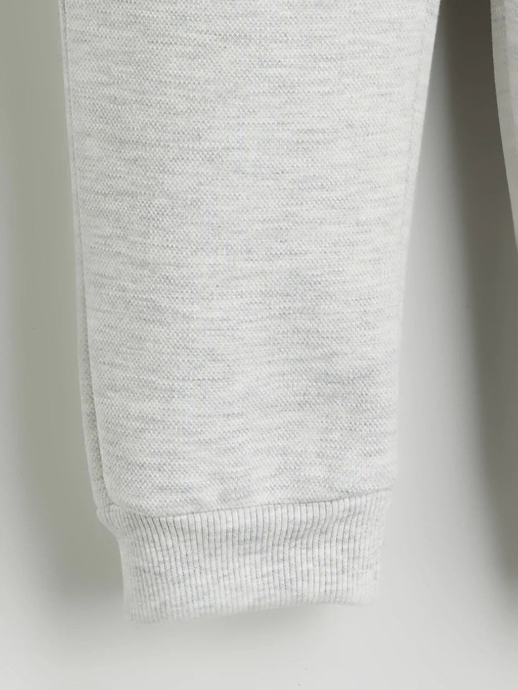 Beli lastikli erkek çocuk eşofman altı, pamuk karışımlı pike kumaştan üretilmiştir. Paçaları ribanalıdır.