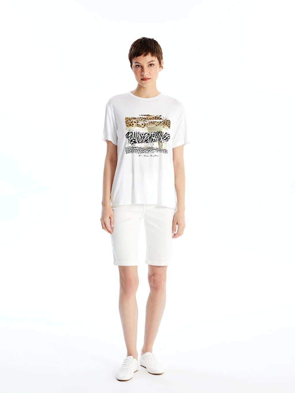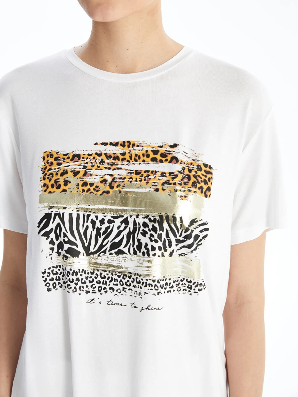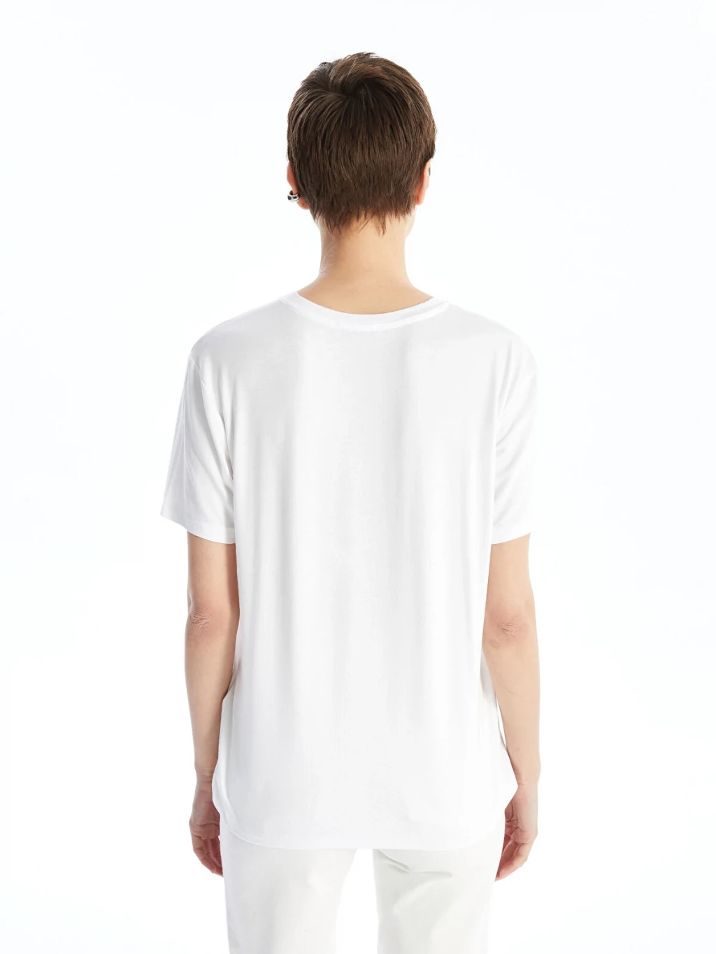 Bisiklet yaka baskılı kısa kollu tişört, dayanıklı poliviskon kumaştan üretilmiştir. Viskoz ve polyester karışımlı elyaftan üretilen kumaşı sayesinde kolay kolay kırışmaz ve bakımı kolaydır.