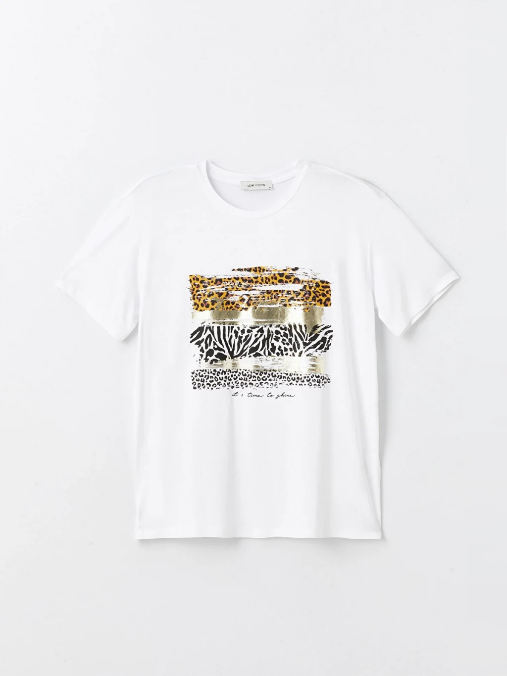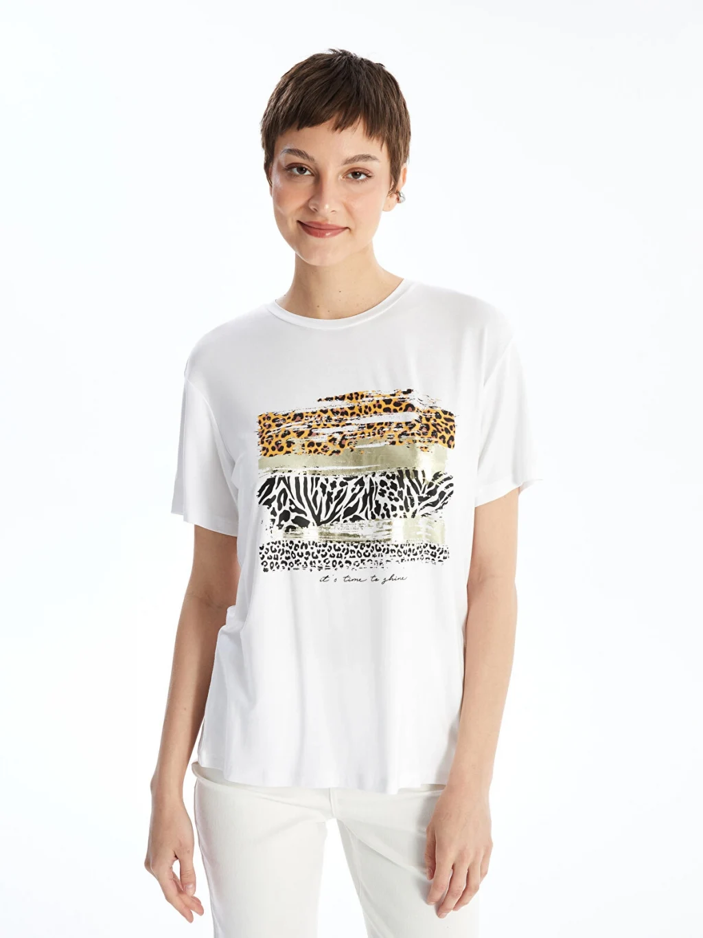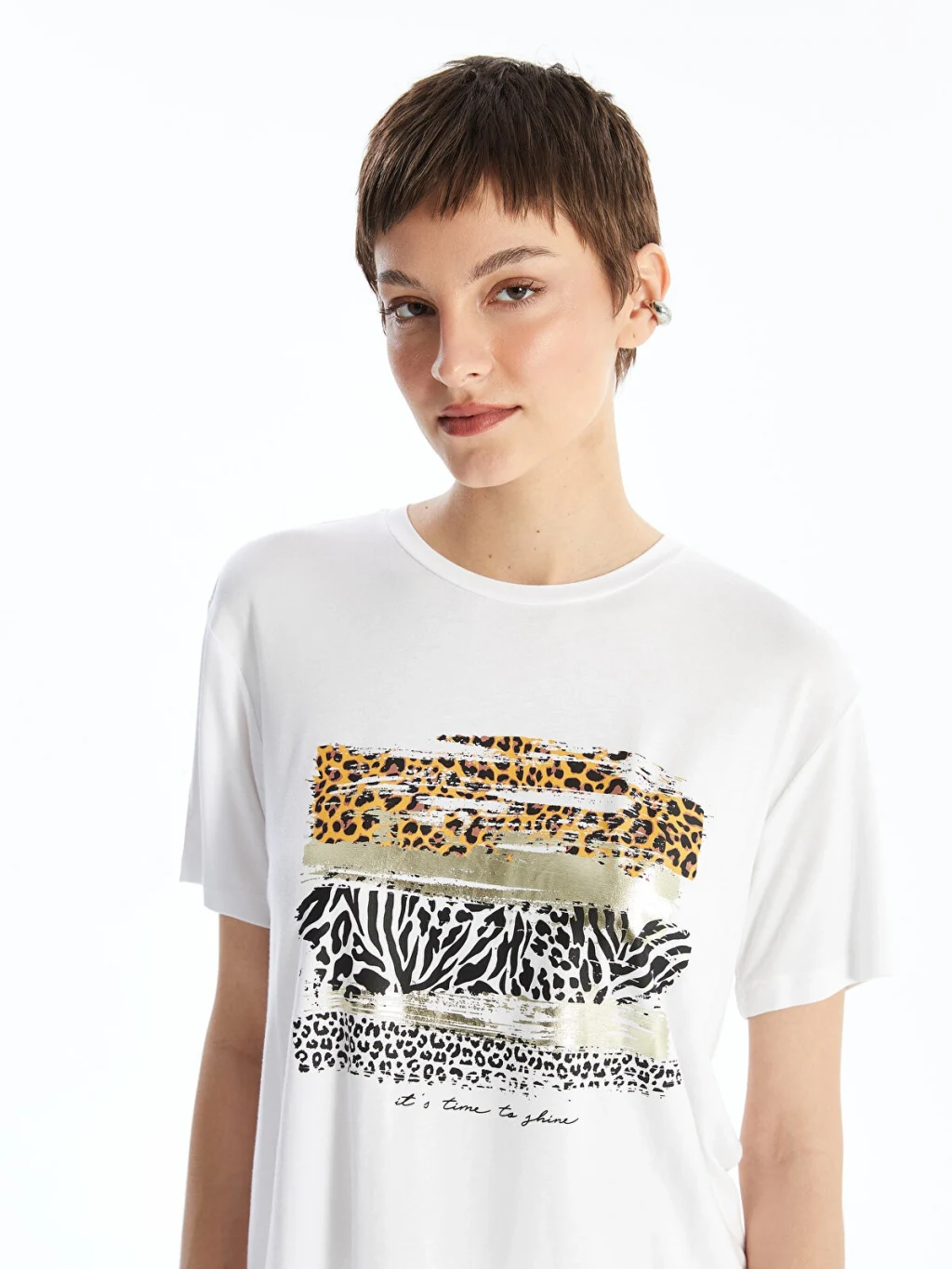 Bisiklet yaka baskılı kısa kollu tişört, dayanıklı poliviskon kumaştan üretilmiştir. Viskoz ve polyester karışımlı elyaftan üretilen kumaşı sayesinde kolay kolay kırışmaz ve bakımı kolaydır.