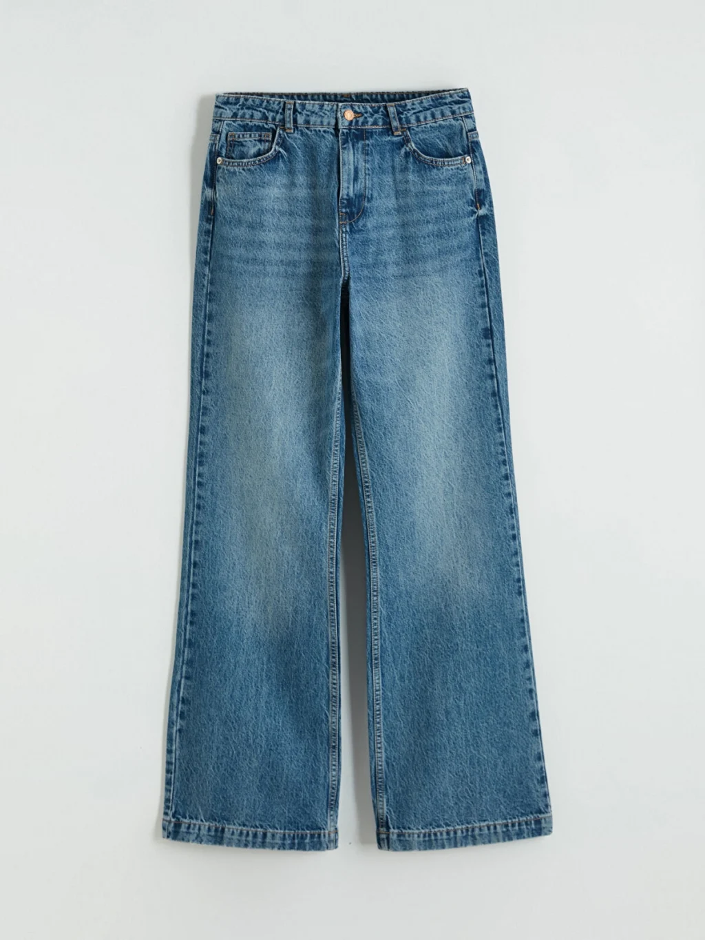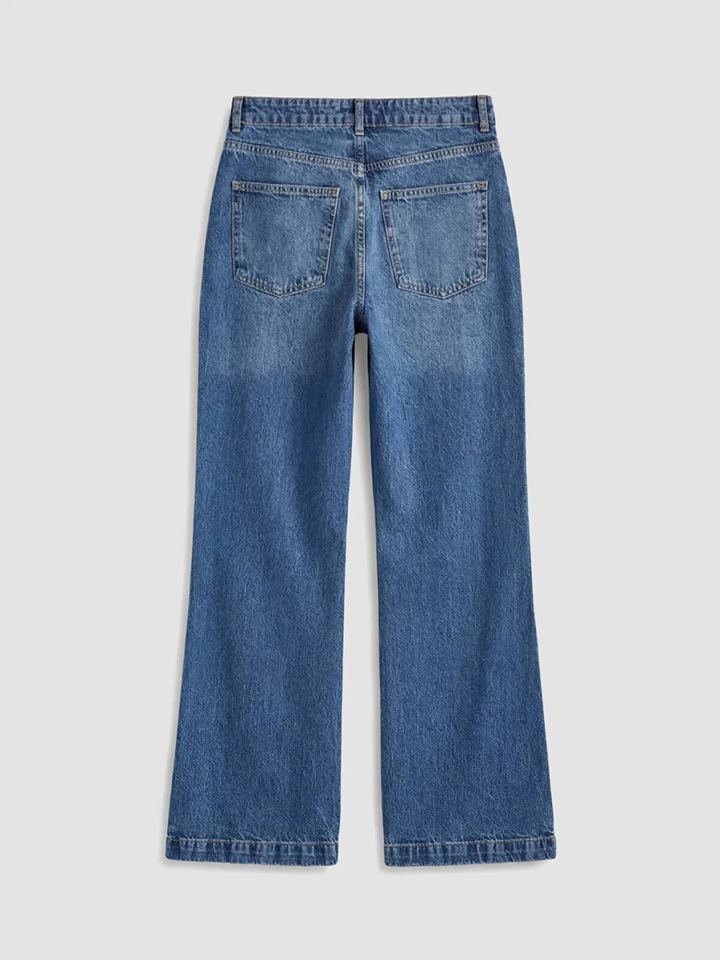 Defacto H1128AXNM28 Mavi Mia Flare Fıt Yüksek Bel Uzun Jean Yıkamalı Pantolon