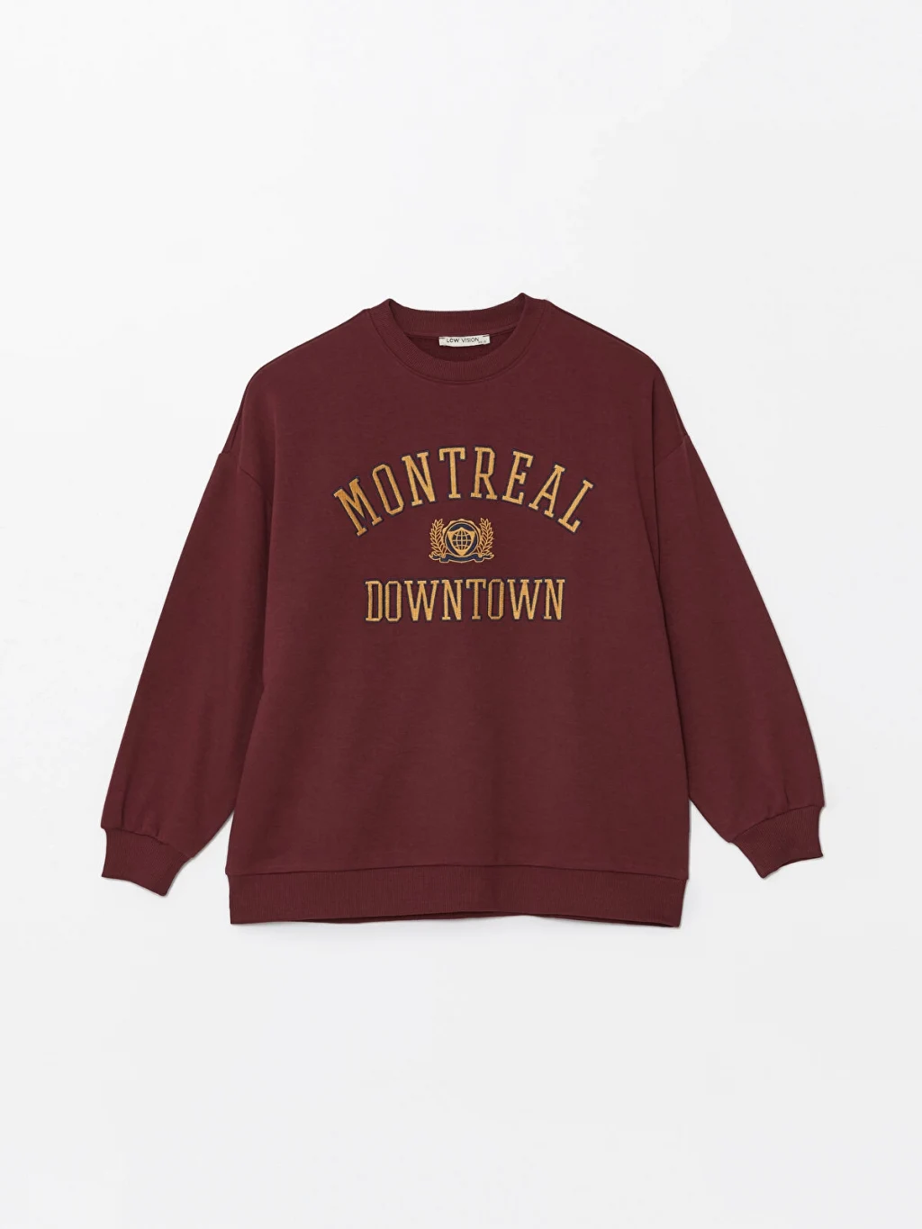 Bisiklet yaka nakışlı uzun kollu sweatshirt, 3 iplik kumaştan üretilmiştir. Bu sayede yumuşak dokulu ve sağlam bir yapısı bulunur. Bilek ve alt kısımları ribana detayları ile tamamlanmıştır.
