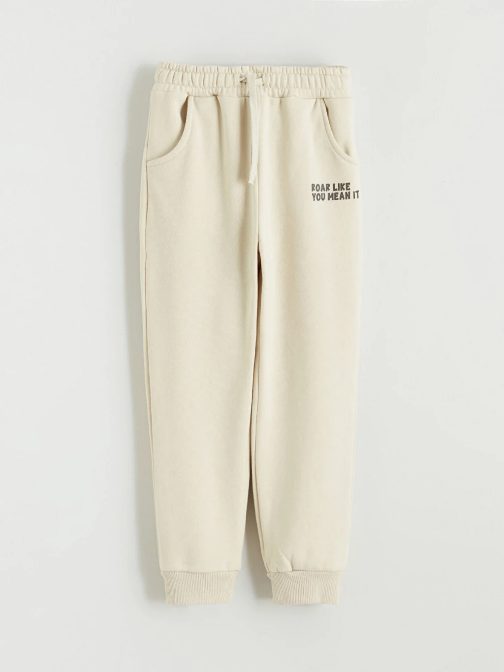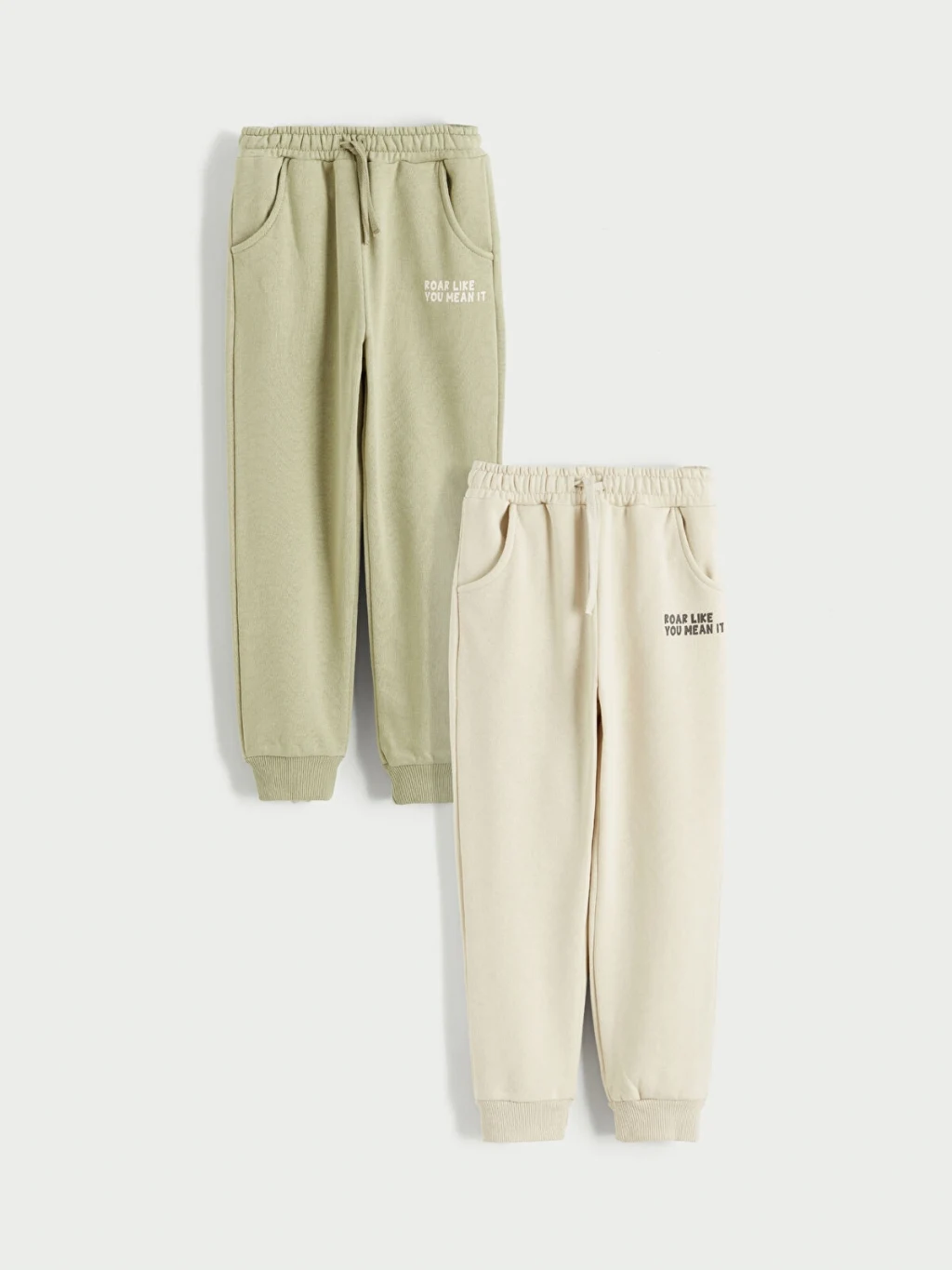 İki adet baskılı erkek çocuk eşofman altından oluşur. Beli lastikli ve bağcıklıdır, paçaları ribanalıdır ve yan cepleri bulunur.