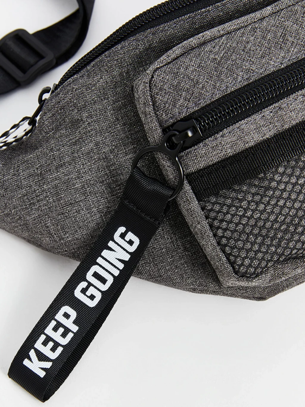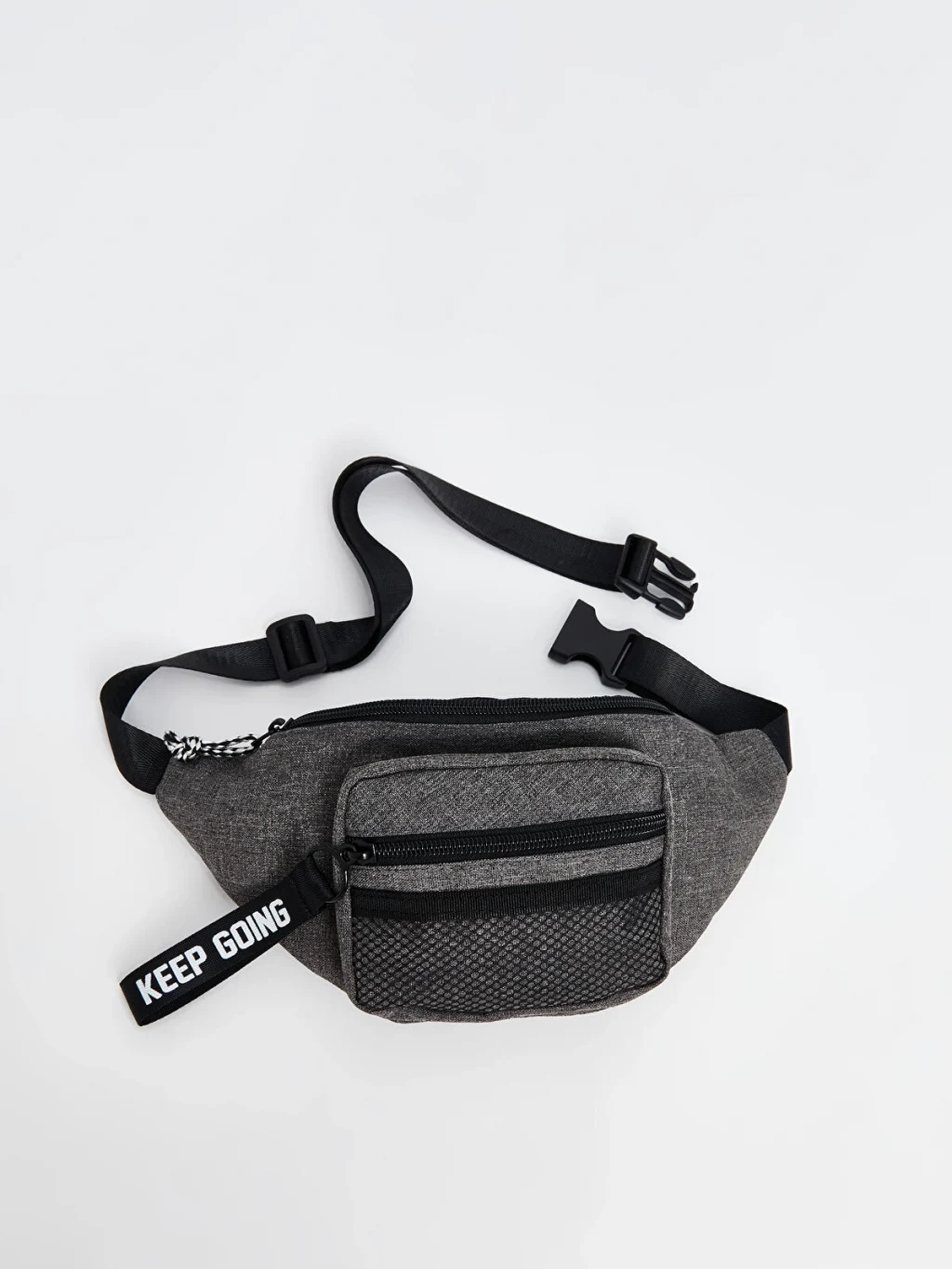 Erkek çocuk bel çantası, fermuarlı ana bölmeye ve fermuarlı, file detaylı ön cebe sahiptir. Ayarlanabilir kemeri klips kapamalıdır.