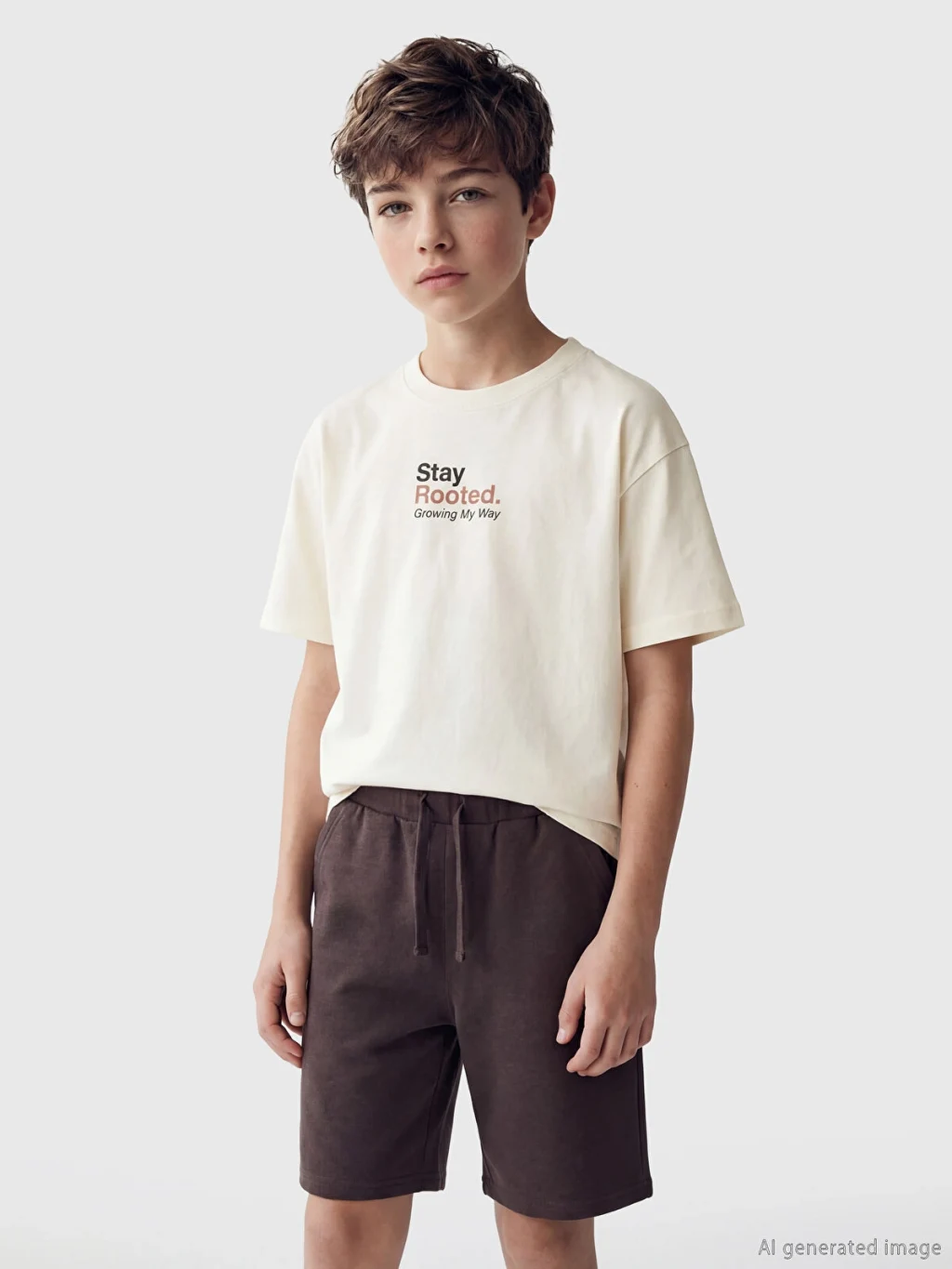 Kısa kollu ve bisiklet yakalı erkek çocuk tişört, %100 pamuk penye kumaştan üretilmiştir. Baskı detaylıdır ve bol kalıplıdır.