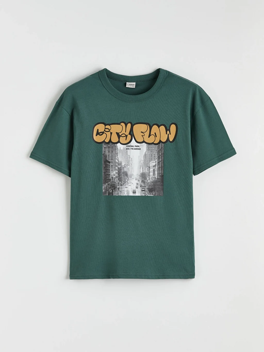 Bisiklet yaka ve kısa kollu erkek çocuk tişört, penye kumaştan üretilmiştir ve ön yüzünde baskı detayı bulunur. %100 Pamuk.