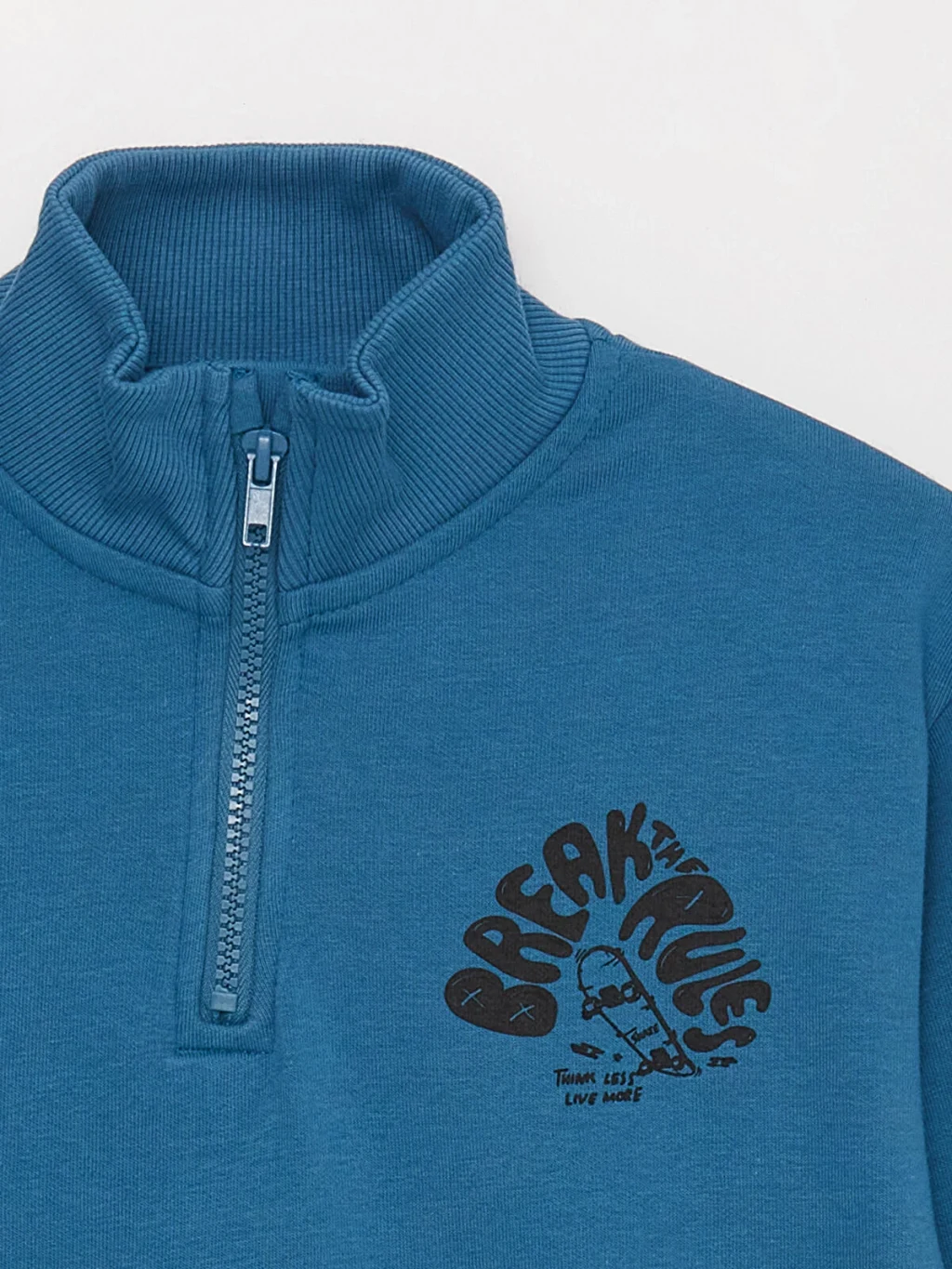 Kalın yapıdaki erkek çocuk sweatshirt, dik yakalı tasarımıyla öne çıkar. Manşetleri ve etek ucu ribanalı detayları, daha sıkı bir görünüm sağlar. Soğuk havalarda sıcak tutan bu sweatshirt, rahatlık ve şıklığı bir arada sunar.