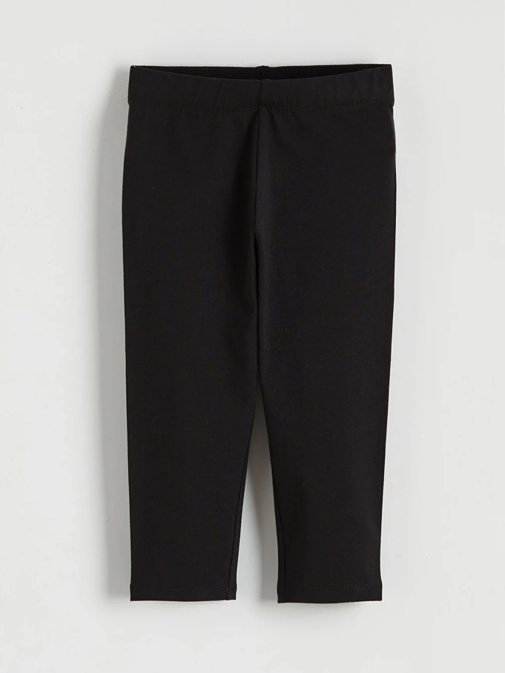 Beli lastikli ve uzun paçalı kız çocuk tayt, desensiz düz kumaştan üretilmiştir. Dar kalıplı bir tasarıma sahiptir.