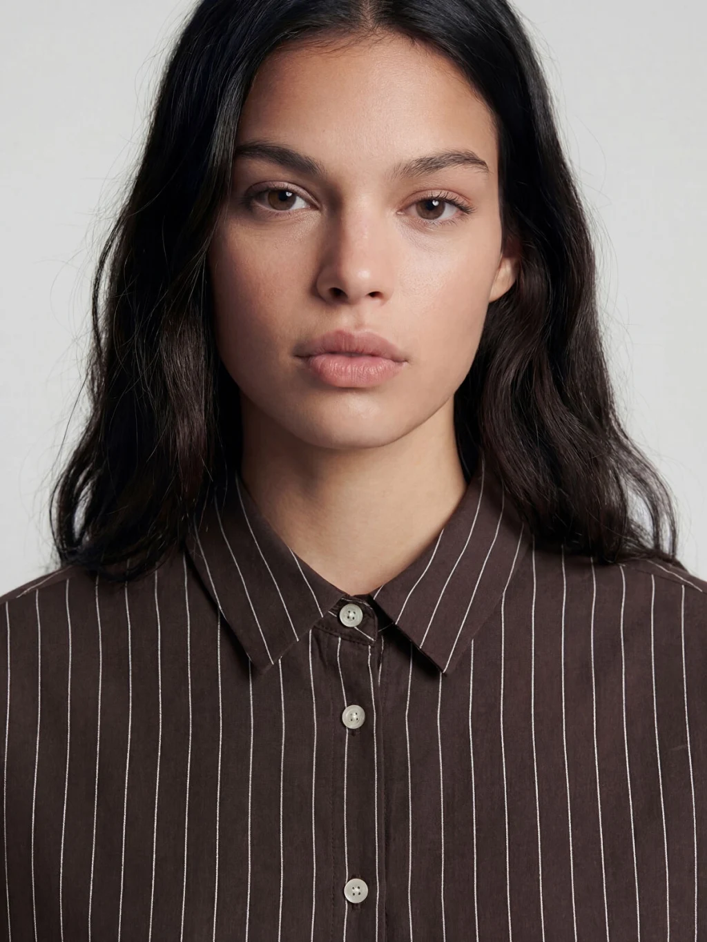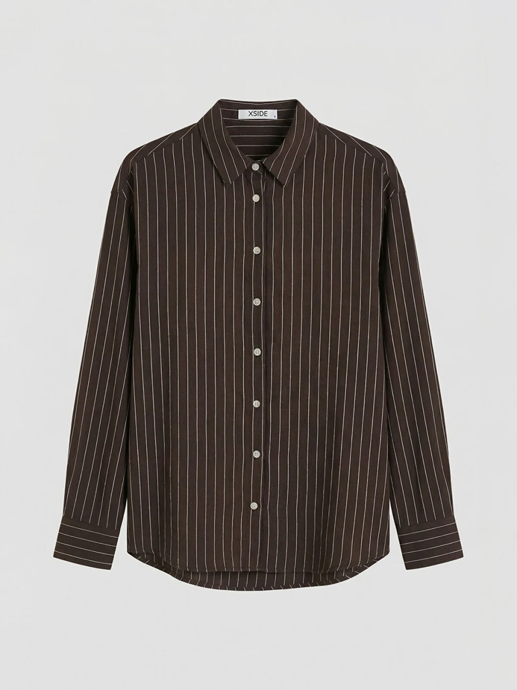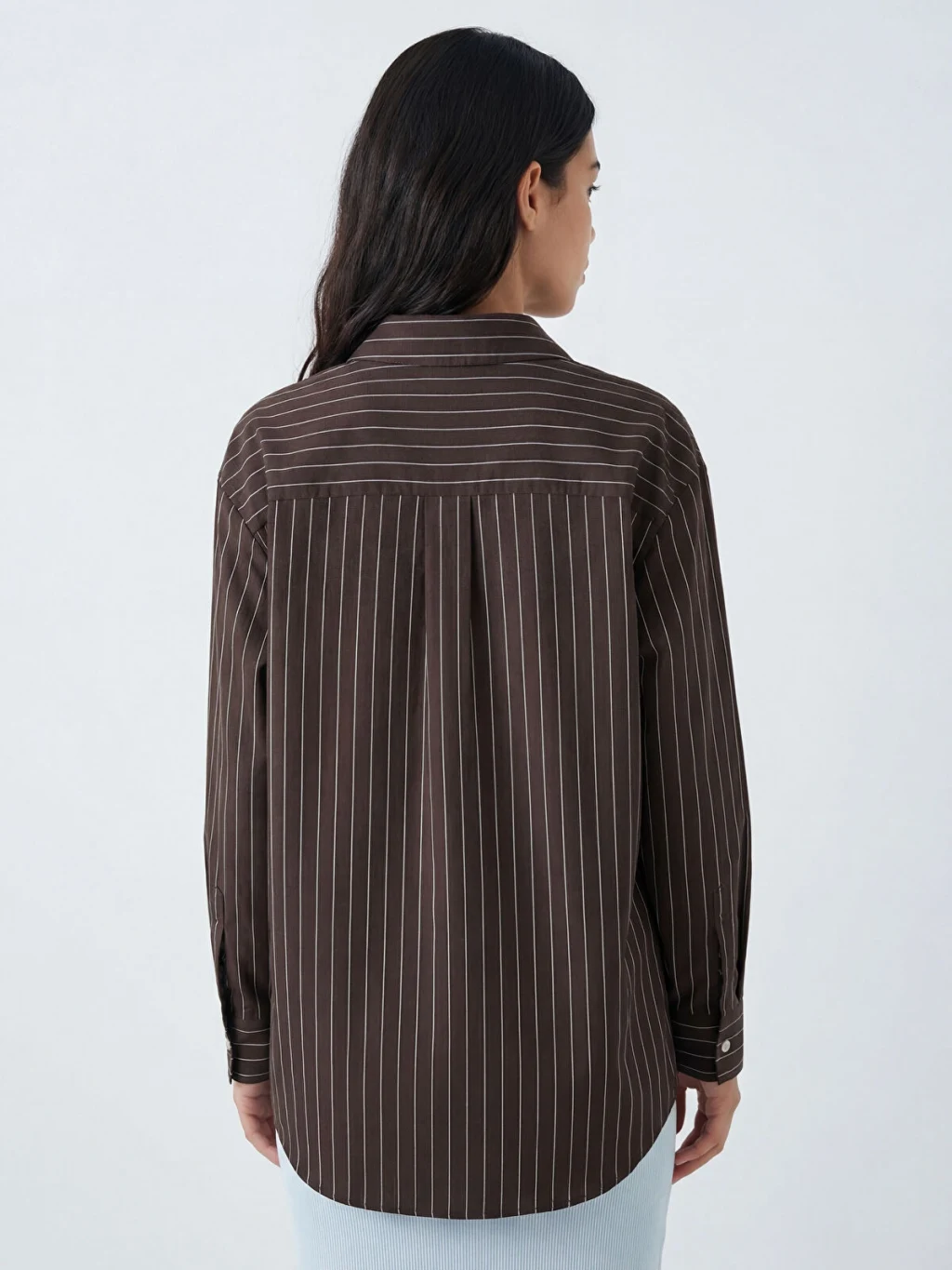 Yakalı ve uzun kollu kadın gömlek, çizgili desenlidir. Manşetli kollara sahip ürün, önden düğme kapamalıdır ve etek ucu kavislidir.